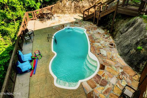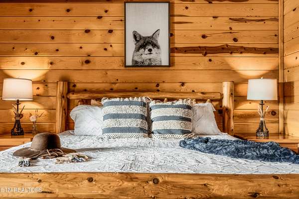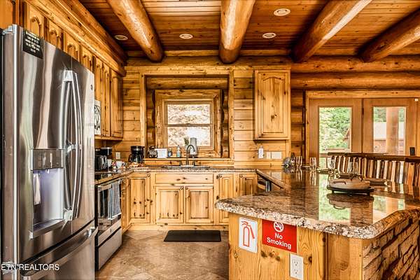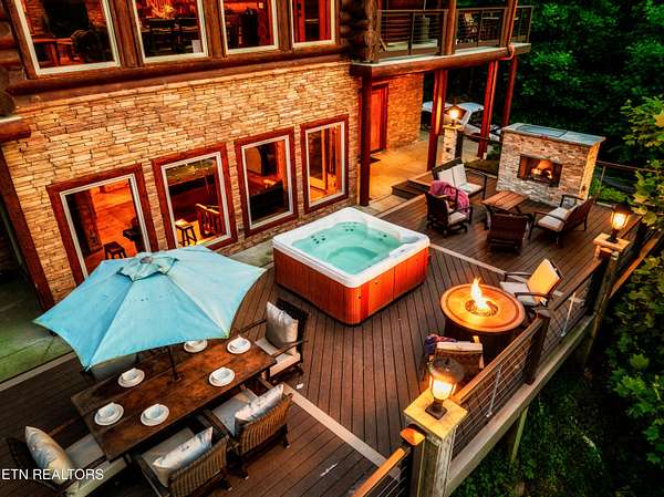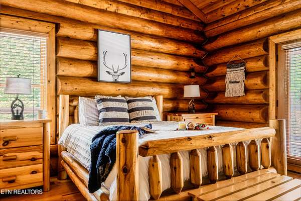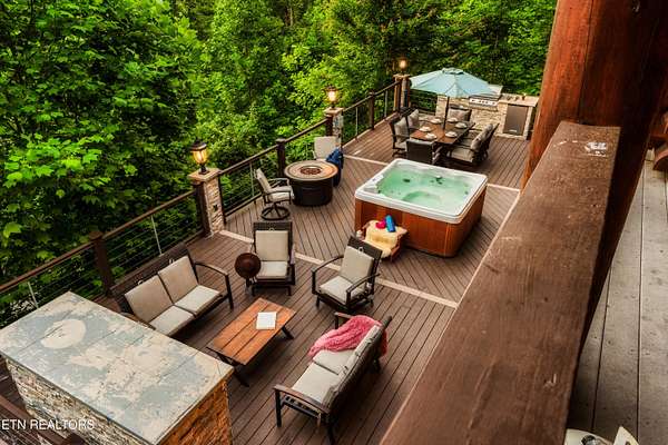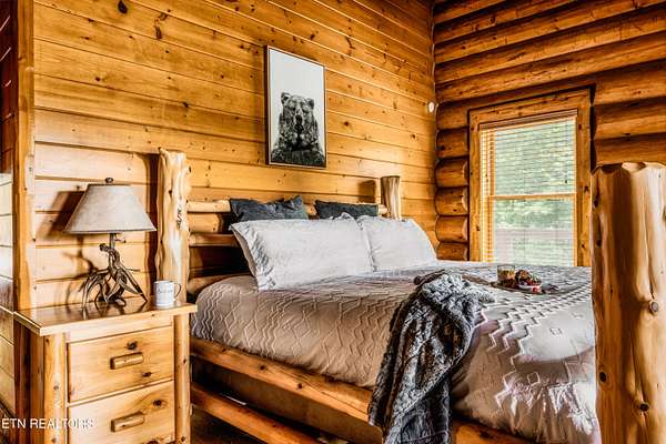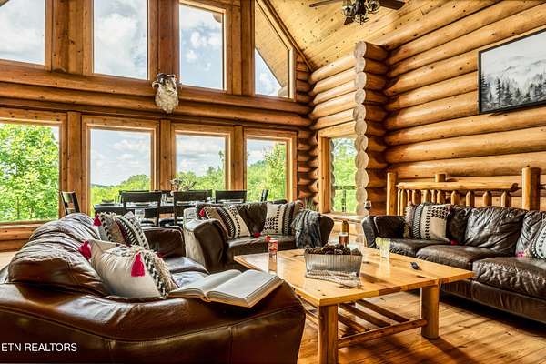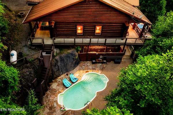 True Canadian Logs - Private Outdoor Pool - Smoky Mountain retreat - $245,000 Gross Revenue - Private Acreage Authentic Canadian lumber cabin with rare outdoor pool nestled on 2 private acres with mountain views. this stunning 5 bedroom, 5 bathroom cabin generated approximately $245,000 in gross rental income in 2025, making it an attractive opportunity for investors seeking both lifestyle and return. Each spacious bedroom features its own private en-suite bath, offering comfort and privacy for every guest. The main level showcases a warm and inviting living room with fireplace, dining area, and a fully equipped eat-in kitchen with bar seating--perfect for gathering after a day in the mountains. The primary king suite and two queen suites are conveniently located on this level. Step outside to an incredible 2,000 sq ft deck built for entertaining, complete with an outdoor kitchen, hot tub, and a beautiful stone gas fireplace--all overlooking the peaceful wooded setting. Entertainment is unmatched throughout the home. Kids (and adults) will love the upstairs loft arcade game room featuring side-by-side racing, Golden Tee, and multi-arcade games, along with two sets of full-over-full bunk beds and additional sleeping space. The lower level offers even more space to unwind, featuring a second game room with fireplace, pool table, multi-arcade game, and futon, along with two private king suites--ideal for larger groups or maximizing rental flexibility. Outside, your private in-ground heated pool adds a rare and highly desirable feature, perfect for year-round enjoyment. Located just 8 minutes from the Parkway and 12 minutes to Gatlinburg, this property offers the perfect balance of privacy and convenience. Whether you're looking for a private mountain getaway or a proven income-producing investment, this one checks all the boxes.