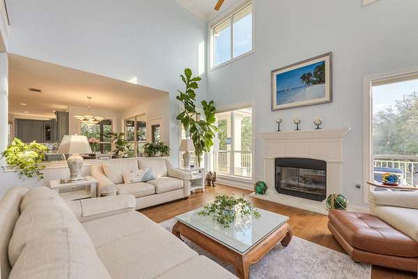 - Breakfast Bar, Ceiling Fan(s), Ceiling-High, Chandelier, Crown Molding, Double Vanity, Entrance Foyer, Interior Steps, Kitchen Island, Multiple Dining Areas, Multiple Living Areas, Open Floorplan, Quartz Counters, Recessed Lighting, Walk-In Closet(s)