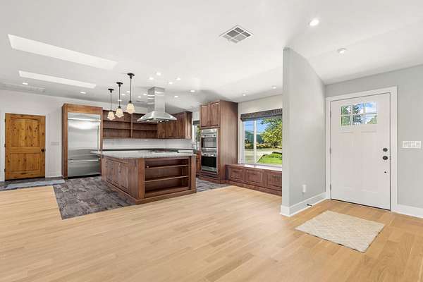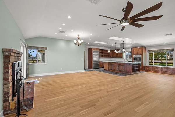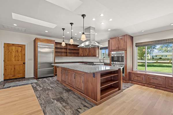 Beautifully remodeled home on 5-acre parcel. The property offers approximately 3.5 irrigated acres with views of Mt. Shasta and Mt. Lassen and combines modern upgrades with timeless charm. Inside, you'll find real hardwood floors and a bright, open floor plan anchored by an impressive kitchen island. The gourmet kitchen is equipped with top-of-the-line appliances, including a built-in refrigerator, and Wolfe double ovens, making it a dream for entertaining or everyday living. Custom concrete, and granite countertops, modern trim package and impressive cabinetry throughout the home!