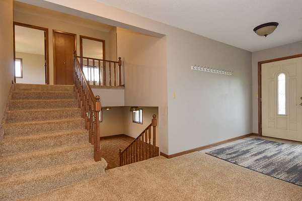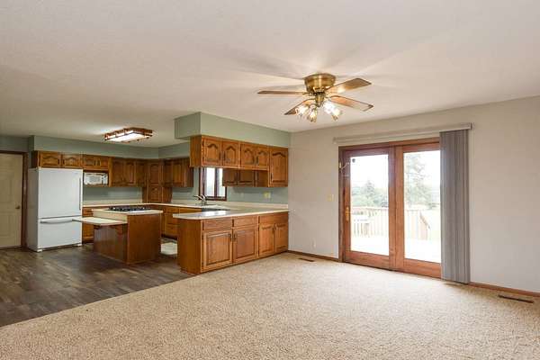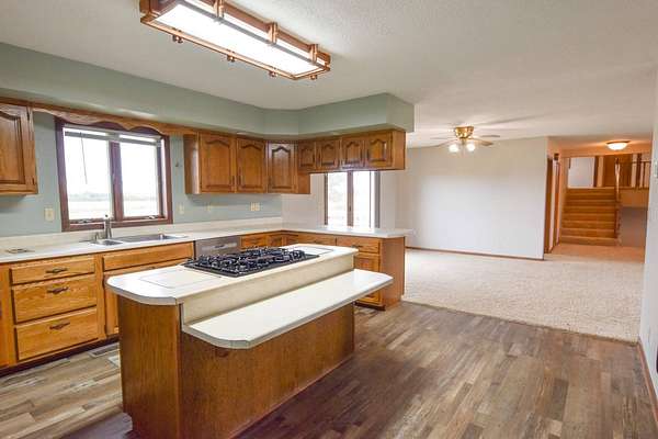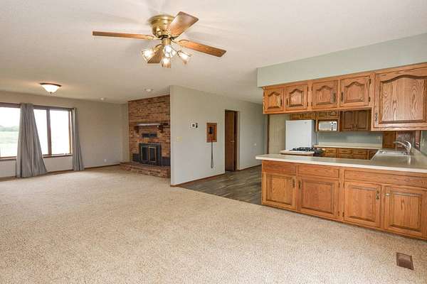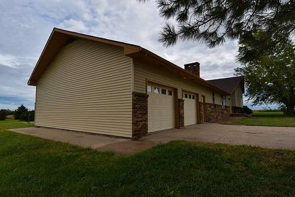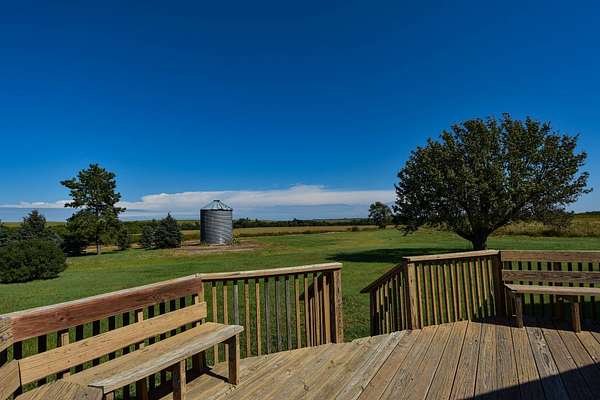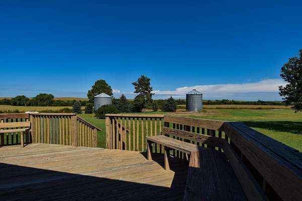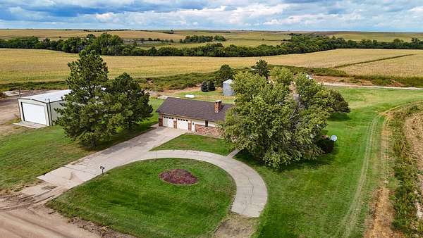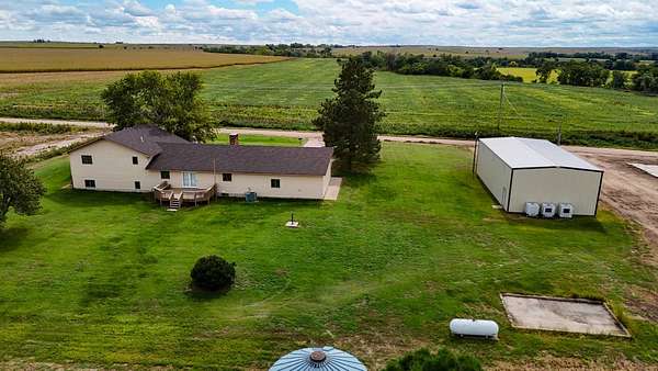 Situated on approximately 6.48 acres of beautiful Furnas County, Nebraska, this expansive home offers breathtaking country views with Sappa Creek as a backdrop from a spacious deck with built-in seating. The main level features an open-concept design, seamlessly connecting a bright living room with a classic brick fireplace, a generously sized kitchen with an island and ample counter and cabinet space, and a dining area with direct deck access for effortless indoor-outdoor living. A beautifully updated full bathroom and a convenient enclosed laundry room complete this level. Up a few steps, three sizeable bedrooms and a second full bathroom with a jetted tub provide ultimate relaxation. The lower level expands the living space with an additional living room, a third full bathroom, and a fourth bedroom. This level also opens to a 1,140-square-foot unfinished basement, offering endless potential for customization or storage. A secondary basement access connects directly to the kitchen for added convenience. A spacious two-car garage, accessible from the kitchen, ensures practicality. A 30ft x 60ft outbuilding with a cement floor and 220-volt outlets provides versatile space for hobbies, equipment, or a workshop. Nearby feed bunks and paneling to the north support agricultural needs. Schedule a showing today to experience quiet country living with stunning views.