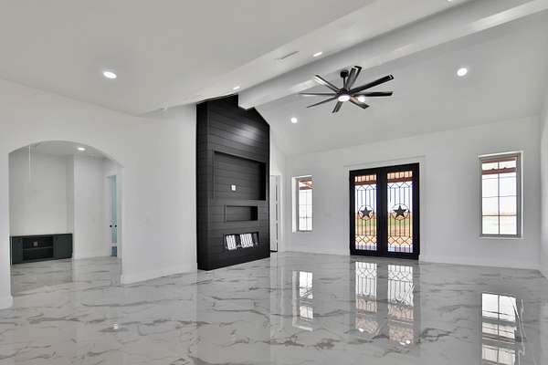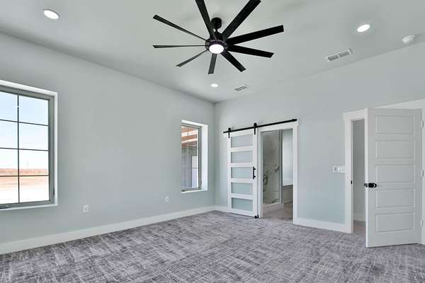 Welcome to 4317 E County Road 6000 - a stunning, brand-new luxury barndominium that perfectly blends modern design, upscale finishes, and wide-open West Texas living just outside of Lubbock. Built with both style and functionality in mind, this one-of-a-kind property offers the space, privacy, and versatility today's buyers are searching for. Step inside to an expansive open-concept living area featuring soaring ceilings, abundant natural light, and a seamless flow that's ideal for entertaining. The chef's kitchen serves as the heart of the home, complete with premium countertops, custom cabinetry, high-end appliances, and a large island designed for gathering. The primary suite provides a true retreat, highlighted by a spa-inspired bathroom with a jacuzzi jetted tub, walk-in shower, and generous closet space. A glass door for the master shower will be installed prior to closing, adding the final polished touch. Enjoy the outdoors from the spacious wrap-around porch, perfect for relaxing, entertaining, or taking in the peaceful surroundings. The property is equipped with a septic system and includes impressive 6,000-gallon water storage tanks, offering added functionality and self-sufficiency. Designed for both lifestyle and utility, the property also features a 24x24 spray foam insulated shop/storage building-ideal for projects, equipment, or additional workspace. With wide-open acreage and endless possibilities, this property is ready to accommodate everything from outdoor entertaining to hobby space or future expansion. For buyers looking for even more land, there is an additional opportunity to purchase the neighboring 10 acres for $85,000-providing even greater flexibility, privacy, or future investment potential. With luxury finishes, thoughtful upgrades, and the peace of country living just minutes from town, 4317 E CR 6000 is a rare opportunity to own a truly exceptional West Texas retreat. Schedule your private showing today to experience everything this incredible property has to offer.