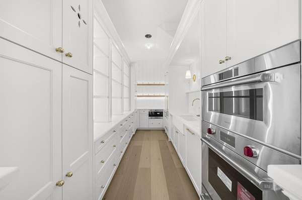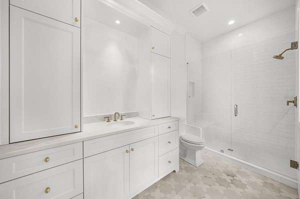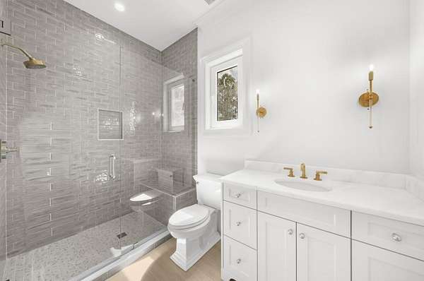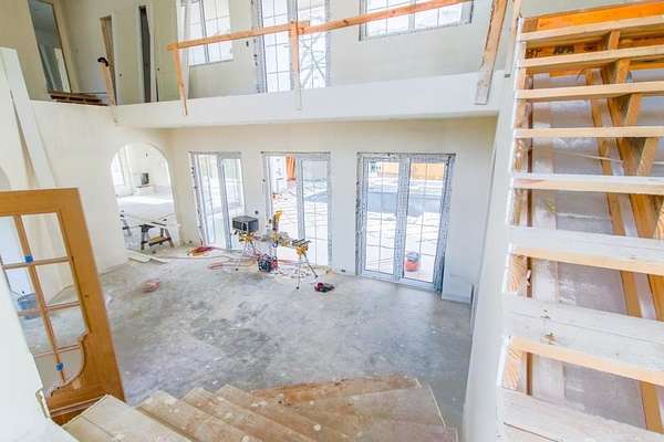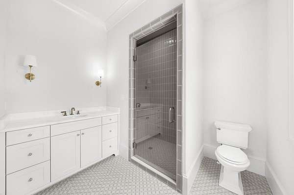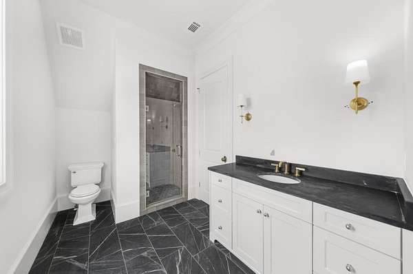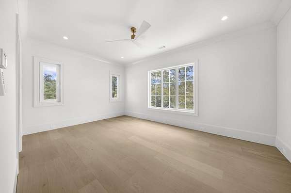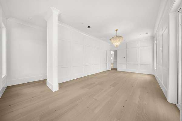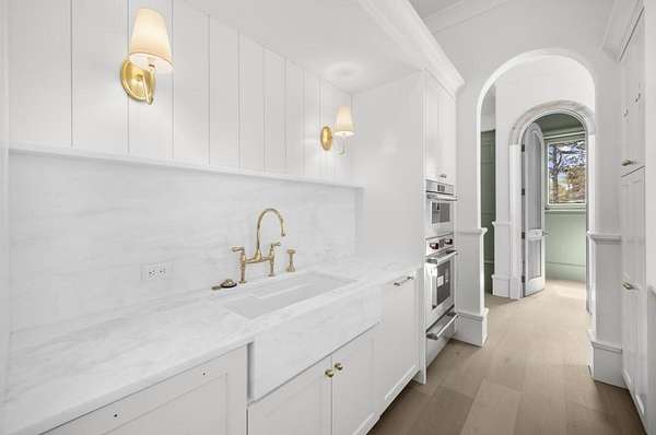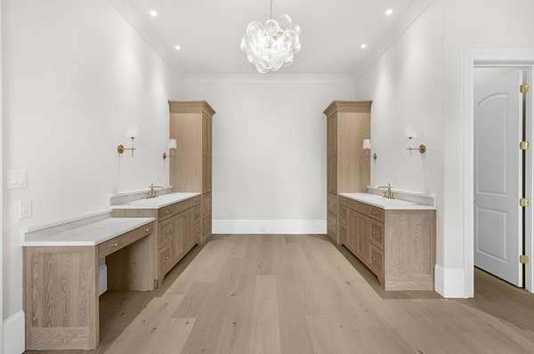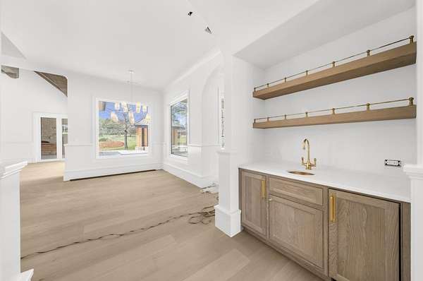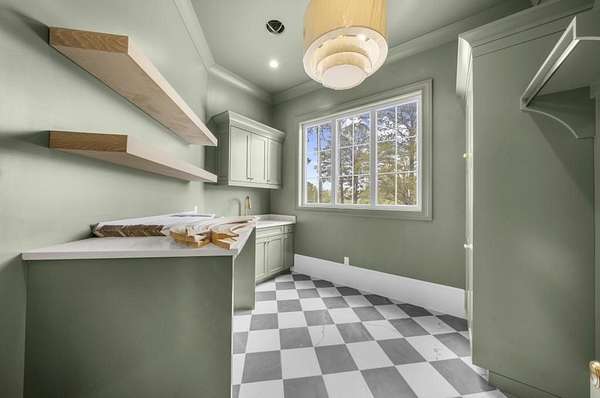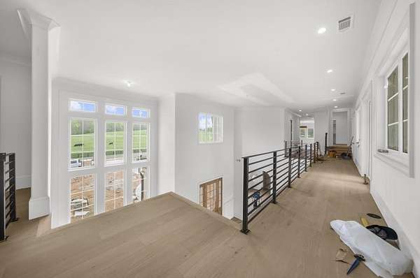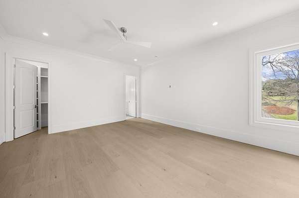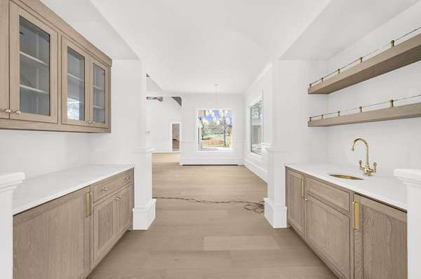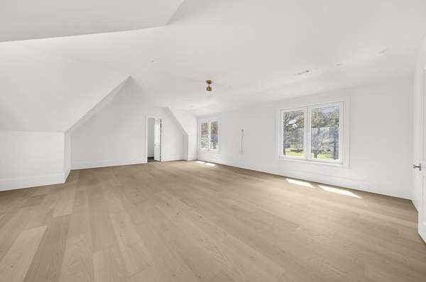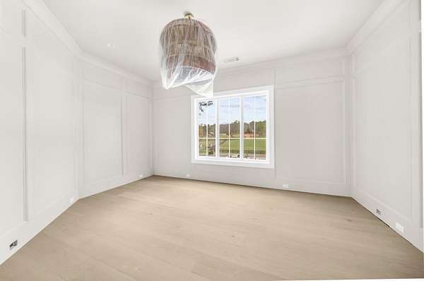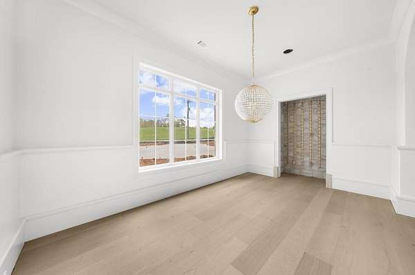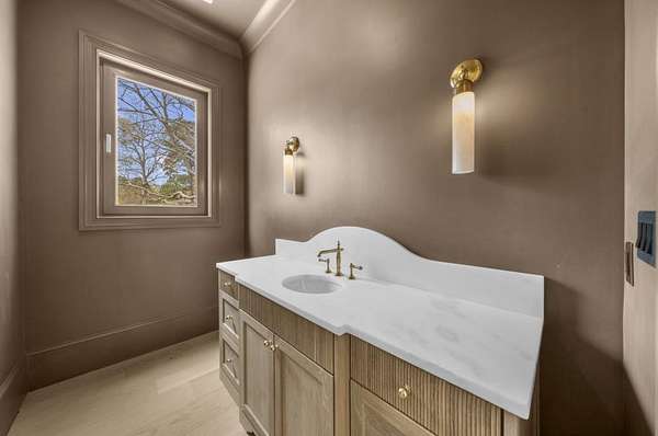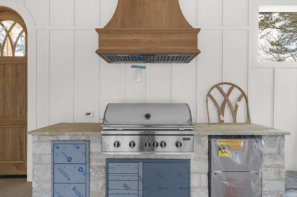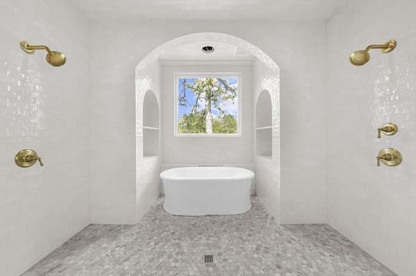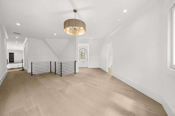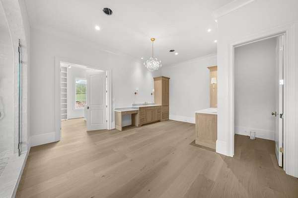 Stunning stone & brick new construction perfectly situated on 2 acres custom built by Savage Family Homes! The grand entry welcomes you with soaring 25-foot ceilings, a dramatic window-wall staircase and elegant arched doorways throughout the main level. Engineered wide-plank white oak floors, fluted white oak custom doors, and exposed beams in the vaulted family room create warmth and architectural interest. The family room is anchored by a stunning Indiana limestone fireplace. The chef's kitchen is a true showpiece with custom inset white oak cabinetry, marble countertops, herringbone wood-paneled ceiling and a center island with garden sink. A full suite of Sub-Zero and Wolf appliances is complemented by a fully equipped scullery featuring a steam oven, standard oven, warming drawer, second dishwasher and extensive storage. Entertain effortlessly in your formal dining room with wet bar and glass-enclosed wine display set against a striking stone feature wall. The private owner's suite on main is a serene retreat with a separate sitting area, private covered porch with gas fireplace and tranquil water views. The spa-inspired bath features his-and-her vanities, an arched frameless glass shower with dual shower heads, designer tile arched niches and a massive custom closet complete with ample hanging space, shoe display, handbag display and center island. This Outdoor living area rivals a luxury resort with a covered pool cabana featuring tongue-and-groove ceilings, Indiana limestone fireplace, pool bath, grill station with griddle, under-counter refrigerator and full wet bar. The 17x34 saltwater pebble pool with raised spa is surrounded by turf-inlay decking and a custom movie pavilion, creating the ultimate entertaining environment. The secondary level offers four spacious en-suite bedrooms, including one with a Juliette balcony overlooking the water, a dedicated study and a large unfinished space ready to be finished as a media room, loft, or home office. A rare opportunity to own a masterfully designed property offering privacy, luxury, and breathtaking views.