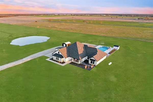 Looking for a Texas farmhouse on acreage with a pool and pond? This private retreat sits on 9.66 acres and offers the perfect blend of luxury, privacy, and country living just outside the city.
