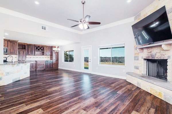 Step outside to the covered back porch and enjoy views of rolling hills, mature trees, and abundant wildlife. The fully fenced acreage includes Zephyr water and an additional construction pad with road, gate, and separate power meter for future expansion. Finished two-car garage, decked attic storage, enhanced foundation, and fiber-optic internet complete this exceptional property.