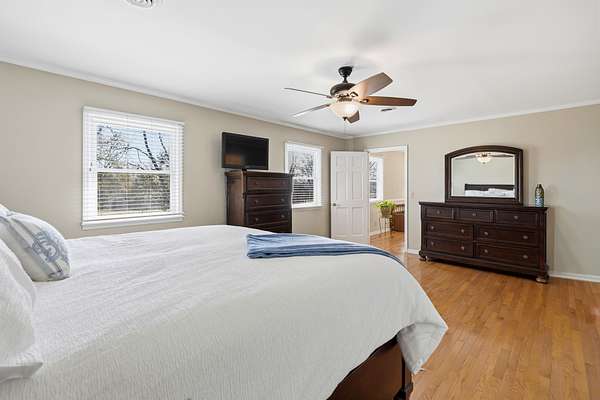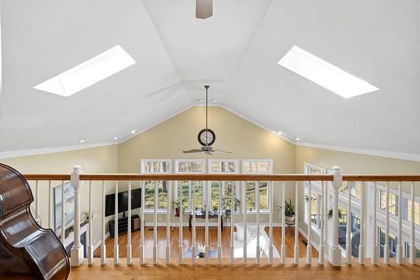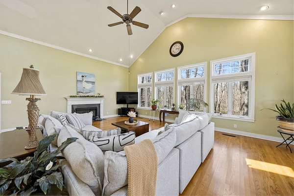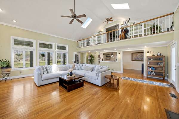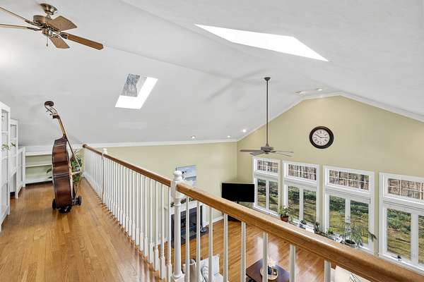 Inside, the layout is designed for real life, not just square footage. With 3 bedrooms plus a spacious bonus room that easily serves as a 4th bedroom, home office, or guest suite, you have the freedom to make it your own. The vaulted great room, filled with natural light from skylights, creates an inviting place to gather, anchored by one of two gas-log fireplaces. Hardwood floors run throughout, adding warmth and character.