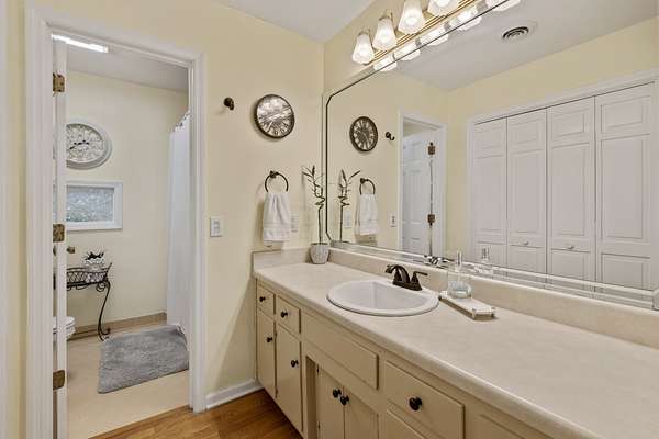 The kitchen blends function and style with quartz countertops, generous prep space, and durable finishes ready for everyday living or hosting a crowd. All three bathrooms have been thoughtfully refreshed over time, featuring updated tile, modern fixtures, and enhanced ventilation—including Bluetooth lighting in the primary bath—while still offering room to personalize.