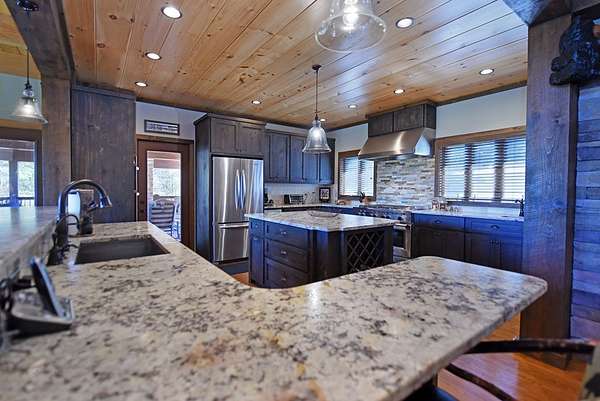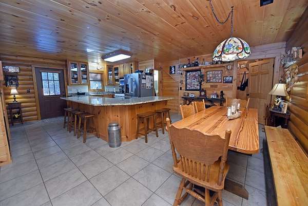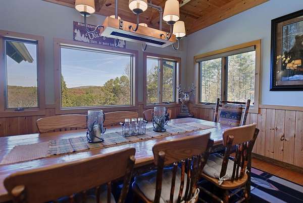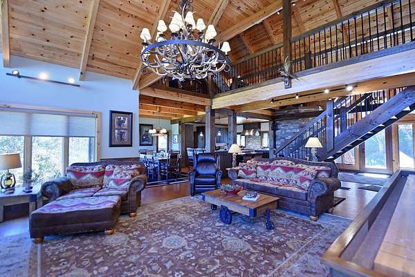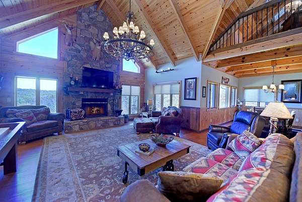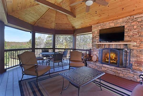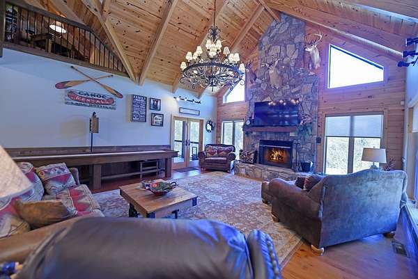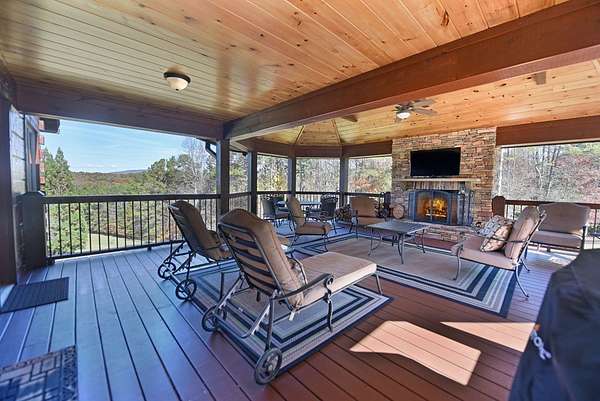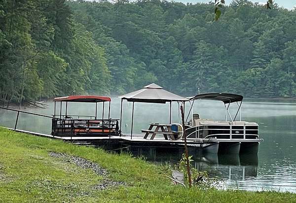 The Perfect Mountain Escape! Daisy Log is Luxury at its finest. a one-of-a-kind estate. Lodge inspired architecture with stunning Mountain Views, Lake Frontage, 17 Unrestricted acres & borders USFS. Beautifully designed & decorated with rustic charm. Gated, end of road privacy features Main Residence, Guest House, Pole Barn, Dock, Boat Ramp & RV Hook up. A true haven for those who appreciate comfort & peaceful surroundings. Furnished main residence welcomes guests with soaring ceilings. Details include glass doors & windows, wood floors, exposed beam ceilings, custom cabinetry & a floor plan that encourages indoor-outdoor living. With its lodge style interior, every facet of this estate celebrates lake & mountain living. This breathtaking 4 bed/4 bath features a great room with stunning wood burning rock Fireplace & open concept. The chef's kitchen include walk in pantry, granite Island, gas range, convection oven, breakfast bar & luxury appliances. A spacious covered deck with wood burning Fireplace offers relaxation & a place to gather with friends & family. Owners suite serves as a private sanctuary with ensuite bath, soaking tub, heated floors & large stone shower. French doors open to screened in porch, hot tub with mountain views. Main level includes a laundry/mud room, spacious bedroom & bath with heated floors. Upper level boasts a Cozy loft for addional sleeping, an office, built in custom shelves & bunk room/bath for guests. 2 Car garage with breeze way. Terrace level with a single garage entrance, bed/bath, a large rec area & ample storage.. A Man Cave epitomizes comfort & fun with wood burning stove, bar, & pub table. Designed for elegance & entertainment. Guest house adds 2 bed/1.5 baths, a covered porch, living room & kitchen with granite. Upper floor includes additional space for living area or office. Pole Barn with single garage. Dock & boat house with private boat ramp in quiet cove on Lake Nottely. The ultimate in quiet & serenity.
