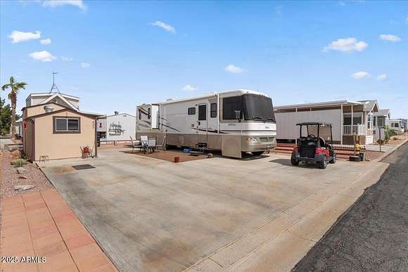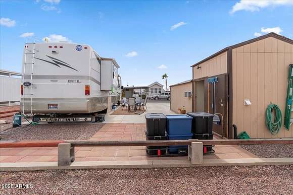 Welcome to your perfect getaway in the heart of Florence, AZ! This 2201 sq ft RV lot, located in the highly sought-after Tierra Del Sol RV Resort, offers an exceptional opportunity to own your land with no land lease fees. The lot is ideally situated adjacent to a common area, offering additional privacy and open space for your enjoyment. Lot includes an oversized storage shed with washer, dryer, & refrigerator. Spend your days lounging by the community pool, soaking in the sunshine, or participating in one of the many daily activities at the clubhouse, where there's always something exciting to do. With all the benefits of ownership, plus the added convenience of a friendly, active 55+ community, this is more than just a property--it's a lifestyle. (Rv/golf cart not included)