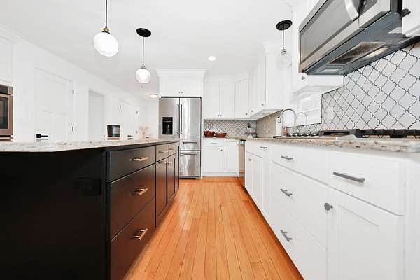 Set on a private 1.77 acre lot in one of Concord’s most desirable locations, 432 Mountain Road offers refined luxury living with exceptional convenience just minutes to I-93, downtown Concord, and only 2 miles from Concord Country Club. Stunning Modern Craftsman home showcasing impeccable design and high end finishes throughout. The heart of the home is a beautifully appointed chef’s kitchen featuring expansive granite countertops, upgraded stainless steel appliances, and seamless flow into both the formal dining area and an impressive family room. Here, soaring 12-foot ceilings and a striking diagonally placed gas fireplace create a warm yet sophisticated gathering space. Step outside to a generous 14' x 16' deck, enhanced by a unique seasonal enclosure, perfect for added privacy and all weather enjoyment. The home offers four spacious bedrooms on the second level, including two with en-suite baths. The luxurious primary suite is a true retreat, complete with a sitting area ideal for a home office and an extraordinary 24' x 8' walk-in closet. Spa inspired bathrooms feature granite surfaces, elegant tile work, and a deep soaking tub beneath vaulted ceilings. Additional highlights include rich hardwood flooring, Energy Star windows, and efficient Lennox heating and cooling systems. A partially finished basement provides flexible space ideal for a recreation room, office, or potential guest bedroom. Completing the property is a three car garage and a setting that perfectly balances privacy with accessibility delivering an exceptional lifestyle opportunity in Concord.
