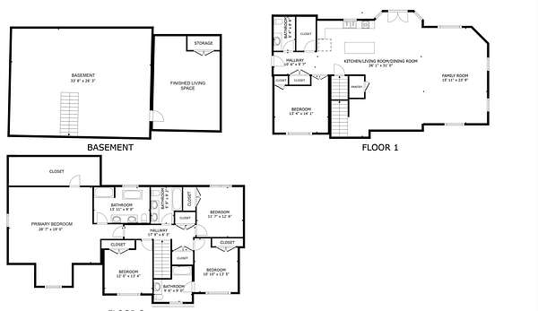- Basement, Bathroom x 4, Bedroom x 4, Bonus Room, Dining Room, Family Room, Kitchen
