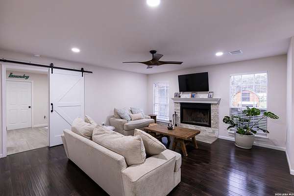Located in the heart of Spring Branch, TX, this upgraded 1995-built home sits on 2 acres with minimal restrictions, ideal for the working homeowner. The seller commissioned Lyon Custom Homes to renovate the property with modern upgrades and quality finishes throughout. The home offers 5 bedrooms and 3.5 bathrooms, which includes a downstairs primary suite and a separate downstairs mother-in-law suite. One of the five bedrooms is currently used as a custom walk-in closet with built-ins that will be converted back to a bedroom. And to make it even sweeter, The property includes a fenced in dog run, and a shed for storage or workspace, with plenty of room to work, store equipment, or expand. Schedule your private showing today and see the freedom this property offers.