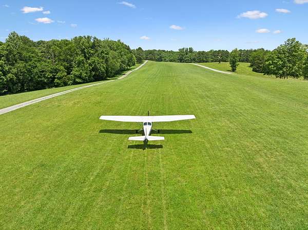 Welcome to a rare opportunity to own an architectural masterpiece. Located in an exclusive AVIATION COMMUNITY with 2 PRIVATE RUNWAYS! This partially constructed home is a dream in the making, designed with precision and intention. The 2000sqft hangar on ground level is ready for your own plane and has a hydraulic pump that operates the 46x14' bi-fold door that easily converts from a generator to an electrical panel install~well built using hollow-core concrete 4' thick slabs installed by USS~partially below grade in your living space, the structure is ready for mechanicals, offering the perfect blank canvas for a discerning buyer to bring their vision to life! The owner states that it is earthquake, tornado and fire proof construction~There is also plenty of room on the property to build your own custom home~in the current designatd space for living it was preconstructed for HVAC, electrical, gas and water systems~Also installed is a 30 amp RV connect, city water and septic~there is also a 24x 14 cabin that has a 16x20 deck on it~flying above your own piece of serenity you will notice a pond in the common space and plenty of woods and open space~this Hangar Home has direct access to one of the runways~HOA includes use of 200 acres, with walking trails, and wildlife. Property is 25 miles to John C Tune Airport in Nashville~owner is willing to share the concept plans for the buyer to complete~don't forget to check out all Cheatham County has to offer including fishing, swimming, boating, walking and hiking