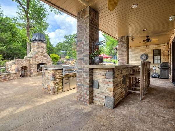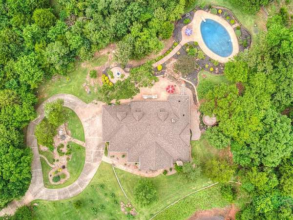Tucked gracefully into the established acreage community of Canaan Creek Farms, this thoughtfully designed estate offers privacy, space, and timeless character on almost 3.5 acres just east of I-35 near Coffee Creek and Air Depot. The main living spaces are both generous and well defined. The kitchen features recently painted cabinetry, stainless steel appliances, and a Sub-Zero refrigerator that will convey with the property. It opens seamlessly to a large living room and an expansive breakfast nook, creating an easy flow for everyday living and casual gatherings. Formal dining and a sitting area add additional flexibility for hosting and entertaining, offering spaces that feel intentional without sacrificing comfort. The primary suite is located on the main floor and serves as a true retreat. Adjoining the primary bedroom is a dedicated office, perfectly positioned for focused work, creative pursuits, or quiet moments of productivity while remaining conveniently connected to the rest of the first floor. Upstairs, all three secondary bedrooms are thoughtfully arranged, providing separation and privacy. A large walk-out attic offers exceptional storage and functionality. The outdoor living area is one of the most compelling features of this property. Designed as a retreat, it includes a covered porch, fully equipped outdoor kitchen, outdoor fireplace, and a fenced pool that invites both relaxation and entertaining. A new pool pump and fan were installed in 2025, adding confidence for future enjoyment. The home is beautifully positioned within the neighborhood, with open sightlines and a natural setting that enhances the sense of space and privacy. This is your opportunity to own an acreage property that balances character, comfort, and standout outdoor living, all within convenient reach of Edmond amenities.
