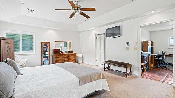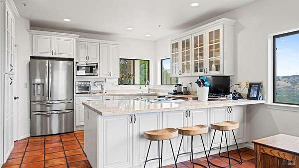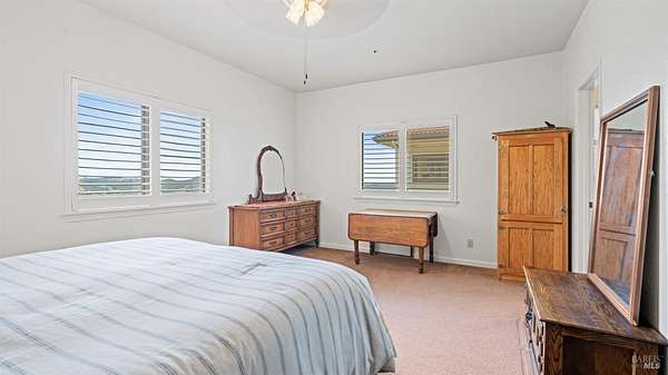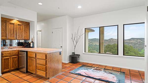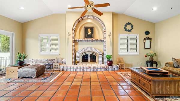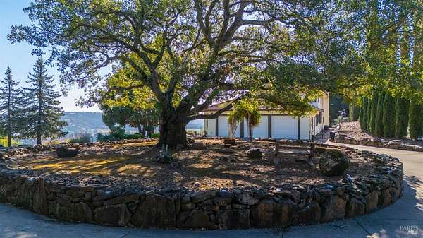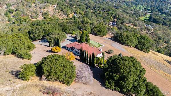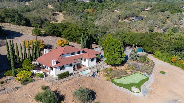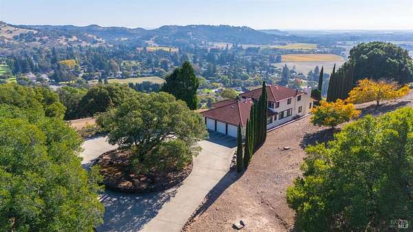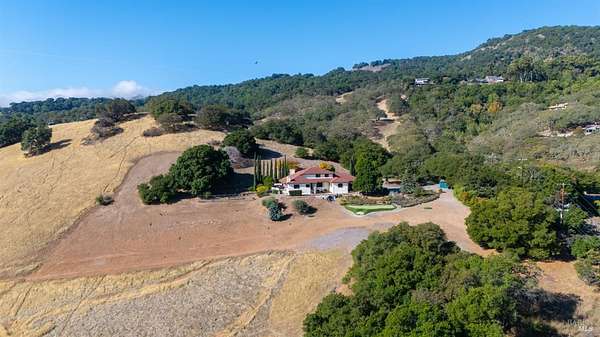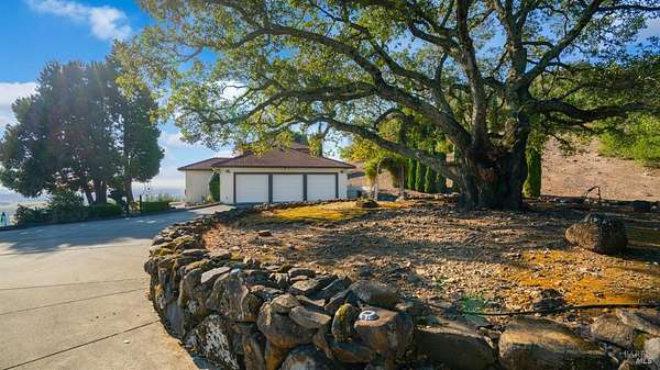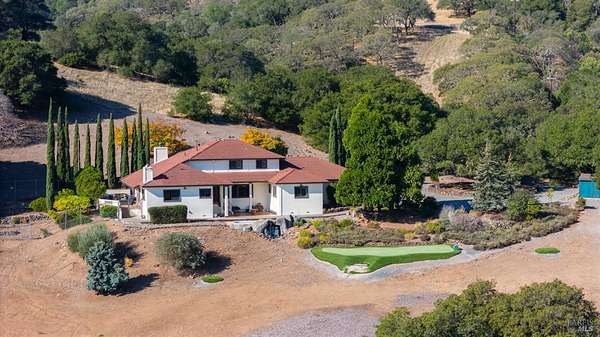 Spectacular 23-acre estate in coveted Green Valley offering unparalleled privacy without isolation. This 3-bedroom, 3-bath, 3,690 sq ft residence showcases breathtaking panoramic views of Green Valley Country Club, Mt. Diablo, vineyards, Suisun Bay, and surrounding hills from every window. Enter through a private gated entrance and dramatic tree-lined driveway flanked by majestic ancient oak trees. The expansive patio captures stunning vistas perfect for entertaining. Inside, discover a well-appointed home ready for your personal touches, featuring stainless steel appliances, quartz countertops, custom cabinetry, classic tile accents, and beautiful shutters throughout. Sustainable luxury includes owned solar panels with two Tesla Powerwall backup batteries and a private well with reverse osmosis filtration. The sparkling swim spa with waterfall feature offers refreshing respite while enjoying those incredible views. The detached garage includes electricity and water ideal as a workshop. Golf enthusiasts will appreciate the practice area and close proximity to Green Valley Country Club. This rare offering combines country serenity with easy country club access. An exceptional opportunity to add your vision to a property with unmatched land and views.