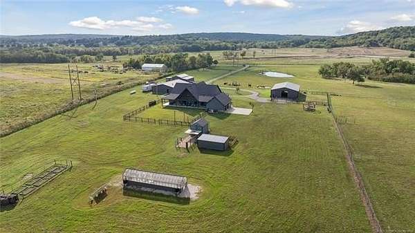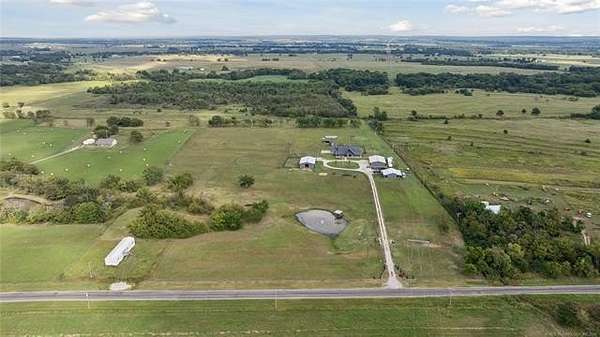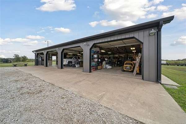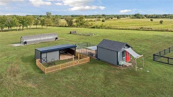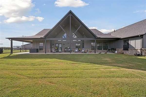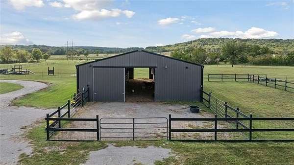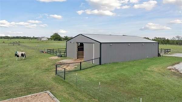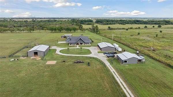 Experience the ultimate in country luxury with this custom estate on 20 pristine acres. Built in 2019, this 3-bedroom, 2.5-bath home perfectly balances sophisticated design with a functional ranch lifestyle. Inside, the wide-open great room features vaulted ceilings & wood flooring, flowing seamlessly into a chef's kitchen equipped with a massive granite island & premium appliances. A private office provides a quiet retreat & the 2nd living area could be a den, mancave, home gym or multiple other things. For the hobbyist or car collector, the garage is a showstopper, housing up to 8 vehicles with its own half-bath. Equestrian enthusiasts will love the 8-stall barn with a dedicated tack room and fully fenced, with horse friendly fencing, pastures ready for horses. Step outside to your own private oasis & fish from the dock of your stocked pond, harvest year-round in the hydroponic greenhouse, or enjoy the custom "chicken oasis." The property even features a dedicated berm for a private shooting range. Located just minutes from top-rated Beggs Schools & Hwy 75, this isn't just a house; it's a self-sustaining lifestyle. Schedule your private tour today to experience this one-of-a-kind Oklahoma retreat.
