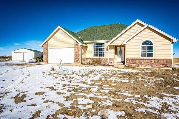 Experience the perfect blend of wide-open space and modern comfort on this exceptional 36-acre property located just off 88th Ave in Bennett. The 4,523-square-foot residence offers a spacious and inviting layout with two bedrooms and three bathrooms, ideal for those seeking peaceful rural living without sacrificing convenience. The home provides generous living areas, abundant natural light, and panoramic views of the surrounding plains. Whether you're relaxing indoors or stepping outside to take in the open landscape, this property delivers the serenity of country life with room to grow. The impressive 33x63 heated pole barn, complete with full concrete flooring—perfect for equipment, vehicles, or workshop use. Attached is a fully finished living area offering 1 primary bedroom, 2 bathrooms, a full kitchen, and a mud room, making it ideal for guests. Enjoy the freedom of rural living while staying connected to the city. Denver International Airport is approximately 35 minutes away, and downtown Denver is just 55 minutes from your doorstep. The expansive acreage provides endless possibilities—horses, farming, recreation, or simply soaking in the peaceful Colorado landscape.