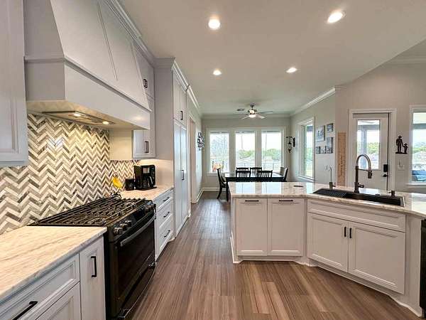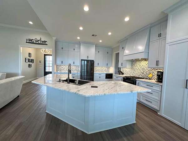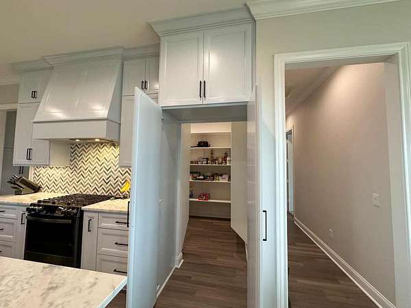 Designed with top-of-the-line craftsmanship and custom cabinetry throughout, this home boasts an open-concept living area that seamlessly connects the kitchen and main living space to a spacious covered back porch with stunning views of one of the ponds. A private den with built-in cabinets provides additional entertaining space, while a large office and mudroom with a sink add to the home's functionality. The huge oversized pantry off the kitchen offers ample storage for all your culinary needs.