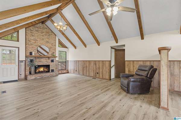 If you’ve been looking for space, privacy & a home with real character, this one is worth a look. This 3 bed, 2 bath A-frame sits on 14.73 acres with peaceful lake views, room to spread out & make it your own. Inside, you’ll love the soaring ceilings with exposed beams in the spacious family room, fresh paint inside and out & brand-new carpet in the bedrooms. The brick wood-burning fireplace creates a warm, inviting living space, while the kitchen is functional & ready for your personal touch. Vintage charm still shines through, giving you the perfect opportunity to update at your own pace. The full unfinished basement offers endless potential for storage, a workshop or future expansion. Zoned for Helena schools, this property combines privacy, acreage, and potential in a great location—ready for its next chapter!