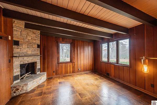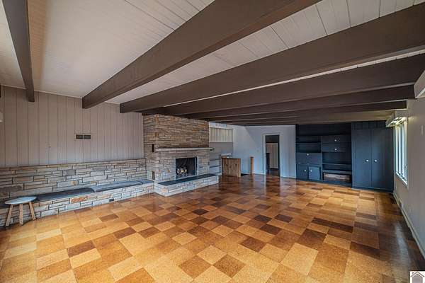 Lone Oak's most original home! This 4 bed 3 full bath Frank Lloyd Wright-inspired retreat showcases organic architecture, timeless style, and a deep connection to nature on over 3 acres. Original cork floors offer warmth and comfort, while mature trees surround you with daily rhythms of nature. The expansive family room features a grand stone fireplace, built-in seating, and stunning views. A cozy study with stacked-stone fireplace is perfect for relaxing. The luxurious primary suite offers floor-to-ceiling windows and a spacious his-and-hers bath. A fully remodeled kitchen boasts high-end appliances, granite countertops, recessed lighting, and two-tone cabinetry. Multiple dining spaces make hosting effortless. Upstairs- another full bath and large bedrooms feature custom built-ins and dreamy lofted ceilings. This isn't just a home--it's art.