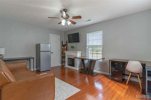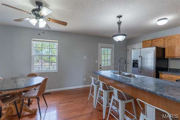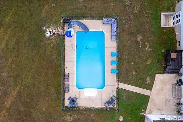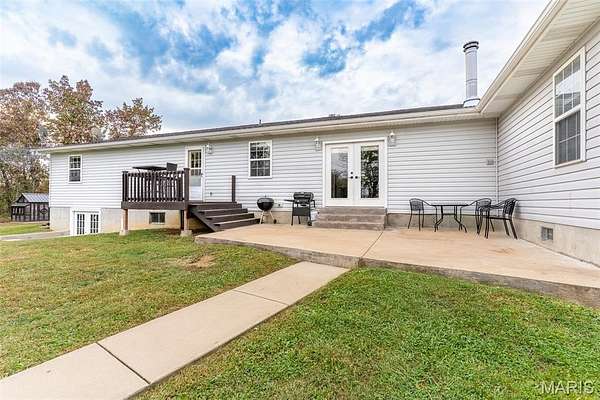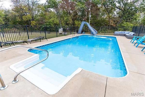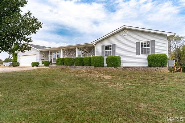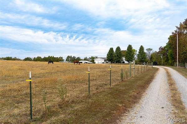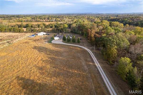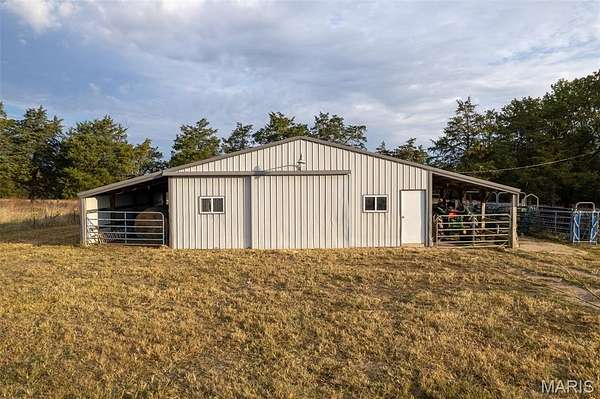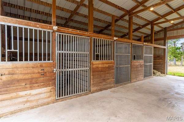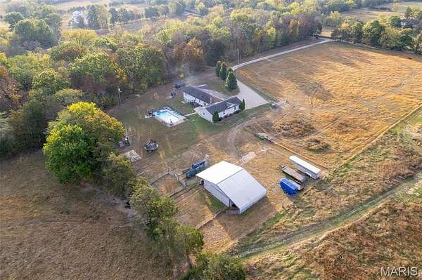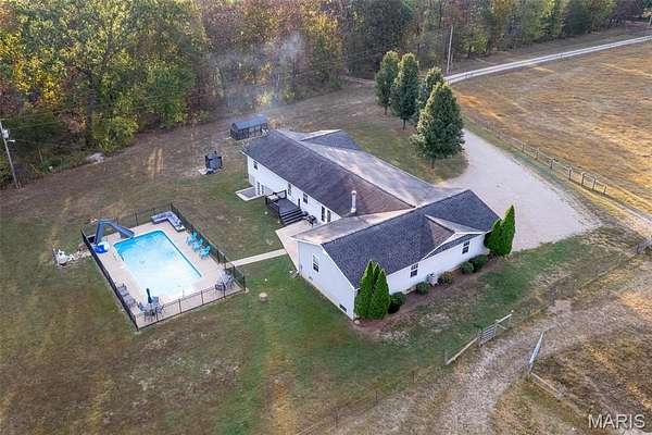 Located in Bonne Terre, Missouri, this 5-bedroom, 3-bath, 2,184 sq. ft. home sits on 20+/- unrestricted acres within the Central School District. The property offers a functional layout with open living areas, a wood-burning fireplace, and a kitchen with ample cabinet and dining space. Enjoy the option of two separate master bedrooms at either end of the home both of which with own attached bathrooms. The home has a 2-car attached garage and an unfinished walk-out basement suited for future expansion if desired. Outside, a heated in-ground pool provides year-round use. A detached barn is equipped with electric and water and includes horse stalls, workshop space, and lean-tos for equipment or storage. The home is equipped with an outdoor wood burning furnace to supplement indoor air and watering heating, if desired. Approximately 10 acres are open and fenced, suitable for livestock or hay production. The property features Three Rivers Creek that runs through the center, offering water access to livestock and natural scenery, a gorgeous park like walnut tree grove perfect for camping and entertainment, as well as a series of ATV/UTV trails throughout the timber. With unrestricted land use, the acreage allows flexibility for horses, farming, recreation, or additional improvements. This property provides a practical setup for those seeking usable acreage, livestock facilities, and a well-maintained home with modern utilities in a convenient location. Average monthly utility average $300.