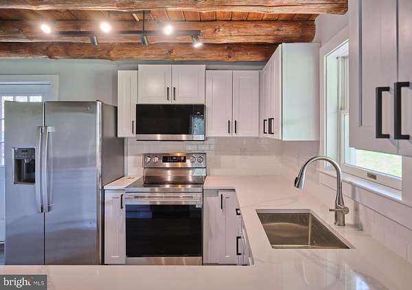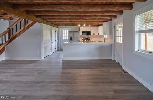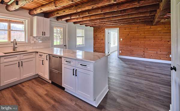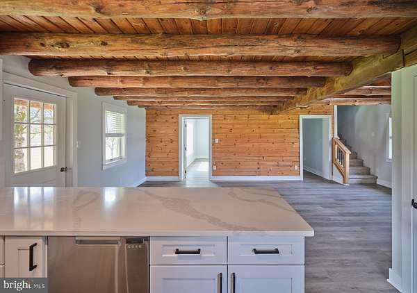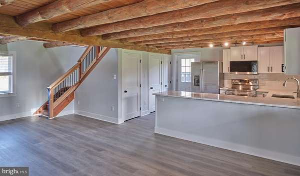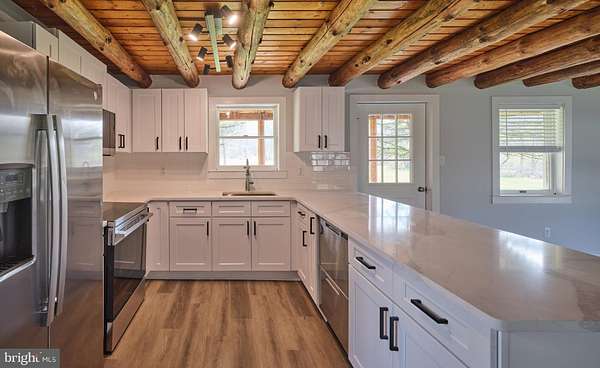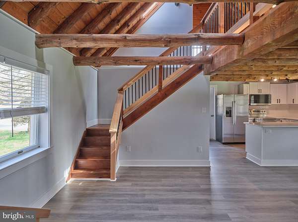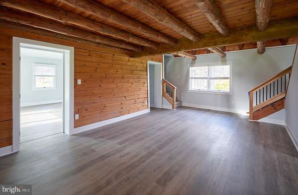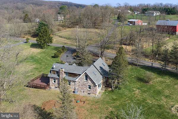 Charming , rustic and fully renovated. This expanded log cabin style home has undergone a complete transformation with a tastefully done new kitchen, quartz countertops, high end stainless appliances and shaker style cabinets. Large dining area with exposed beams and beautiful site lines from each window. The brand new main floor master suite offers a full bath, with double vanity, walk in shower, expansive walk in closet and French doors leading to large deck overlooking the gently sloping landscape. There is an additional den and main floor laundry. The 2nd floor provides two more bedrooms, a full bath, office and an open loft overlooking the main living space. The property offers a 45x 80ft pole building with deep poured concrete floor , 14 ft doors and day light upper siding panels for natural light. This is the ultimate space for the car collector, storing equipment or just creating an additional hobby space. Set in a rural and bucolic setting just minutes from Milford, Riegelsville and Frenchtown. Also a short drive to rt 611, 78 and the Lehigh Valley. Palisades school district. Schedule your tour today!