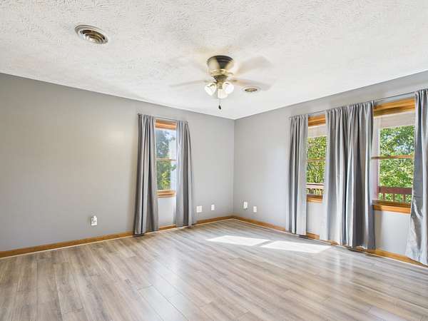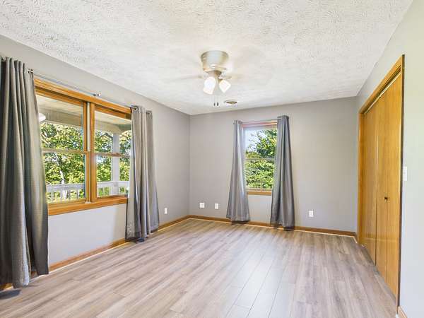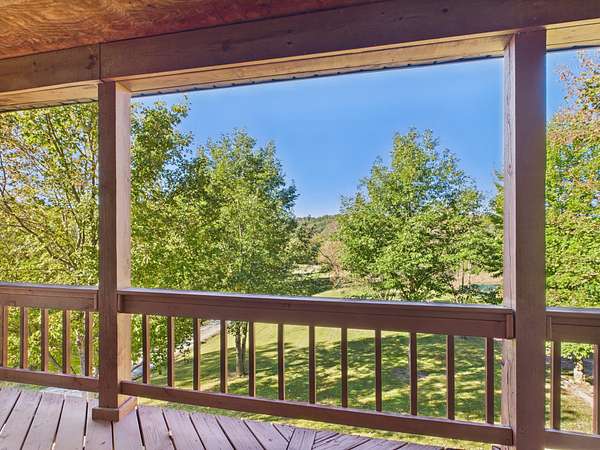 Large decks overlooking the property, including stunning views of the pond from the master bedroom, kitchen, front porch, and upstairs above the front porch