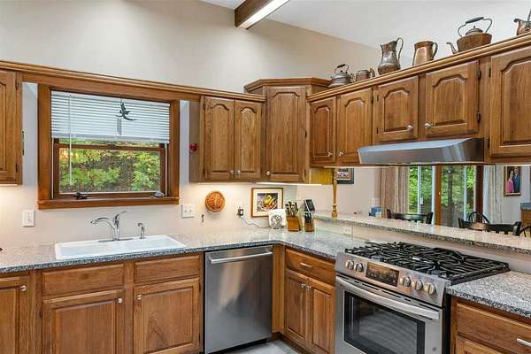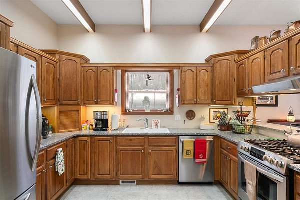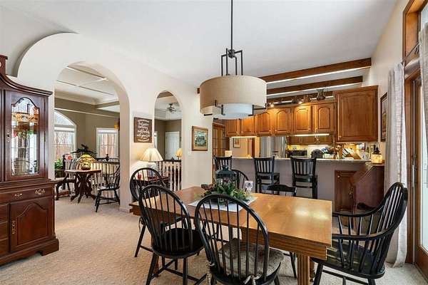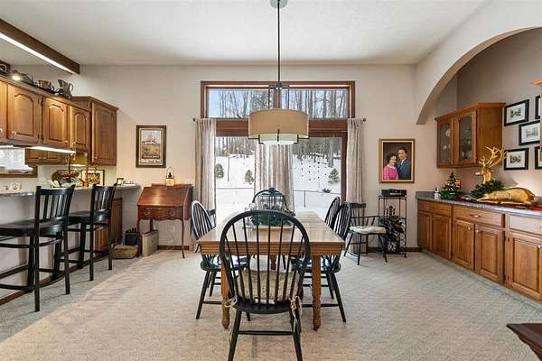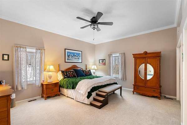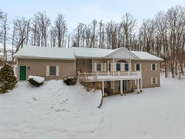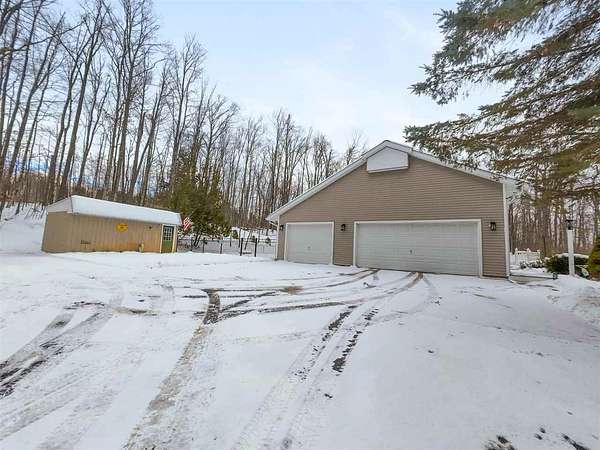 Nestled in a very private setting close to Petoskey, this exceptional home offers the ideal blend of tranquil living and convenient access to amenities. The thoughtfully designed open floor plan showcases spacious rooms throughout, enhanced by elegant 10-foot ceilings that create an airy, welcoming atmosphere. The main floor features a luxurious owner's suite complete with a separate sitting room, perfect for quiet moments or morning coffee. The heart of the home is the large, open kitchen and eating area, beautifully appointed with custom built-ins that provide both style and functionality. Natural light floods the formal living room through an abundance of windows, while the finished walk-out lower level offers additional living space with 9-foot ceilings, three generous bedrooms, one full bath, and a spacious family room ideal for gatherings or relaxation. Set on 2.55 acres, this property provides ample space and privacy while maintaining easy access to modern conveniences. The fenced backyard creates a safe haven for pets to roam freely, and two expansive decks offer perfect venues for entertaining or simply enjoying the peaceful surroundings. When autumn arrives, enjoy filtered views of Walloon Lake across the street. Recent improvements include conversion to natural gas, new water heater, upgraded furnace components, professional interior painting, new flooring in key areas, three new toilets, updated appliances, Generac generator installation, and comprehensive window treatments. The property's prime location puts you minutes from Meijer, Walmart, Aldi, Lowe's, and downtown Petoskey's beautiful shoreline. Experience effortless living in this move-in ready home - schedule your private showing today and discover why this could be your perfect sanctuary! Also offered with the house on 7.69 acres with 2nd two-story, concrete and stick-built garage for $749,900, MLS 478465.