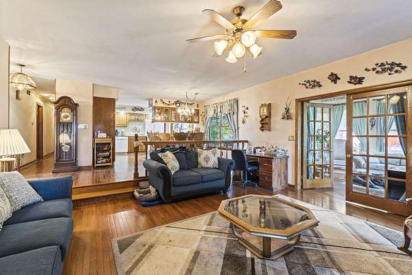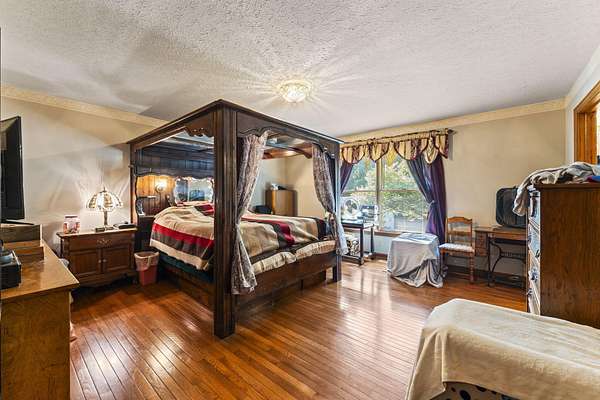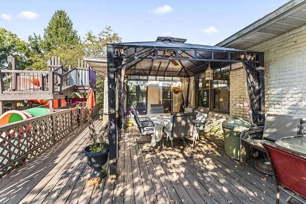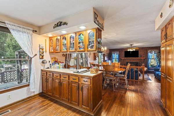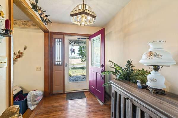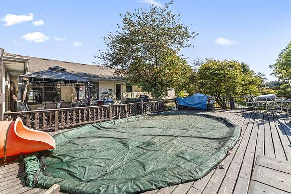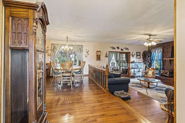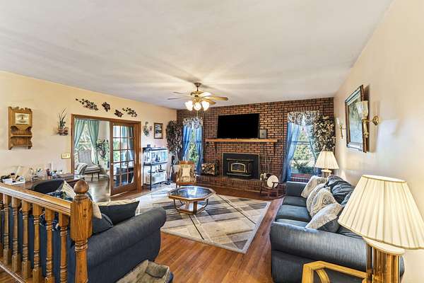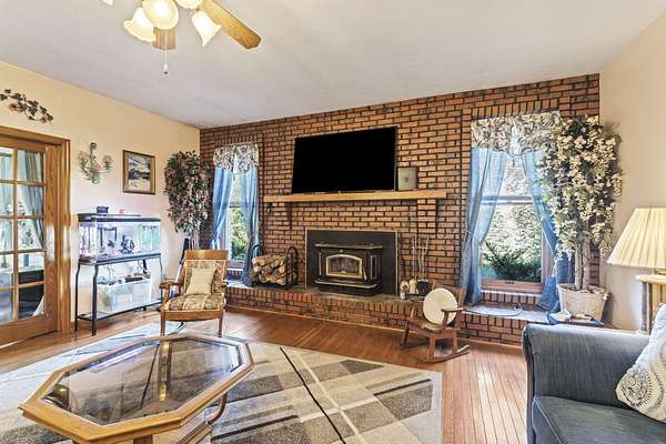 Welcome home. This Beautiful Custom-built brick Country home sits on 4.23 acres half are wooded. It boasts solid 6 panel oak doors, solid oak flooring throughout, along with oak cabinetry. Additionally, 2 car attached garage, a detached 24x24 2.5 car garage and a 24x30 detached building. This open plan Kitchen, dining and family room have French doors leading to the 4-season sunroom. Enjoy the serene deck, perfect for observing wildlife or taking a swim. This home offers an abundance of features and opportunities for relaxation and enjoyment.