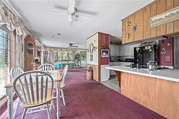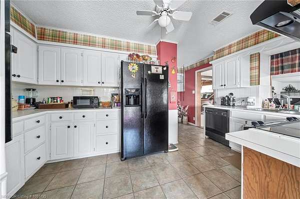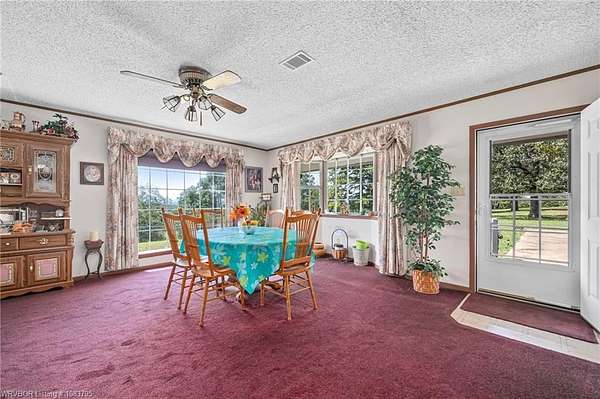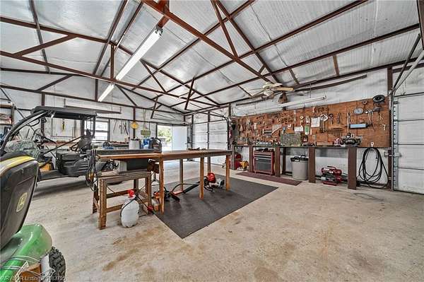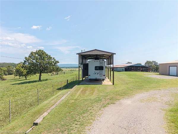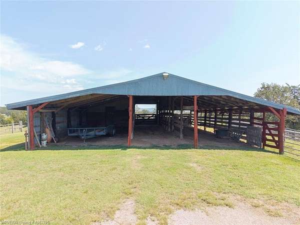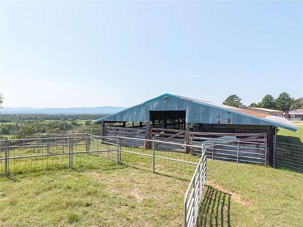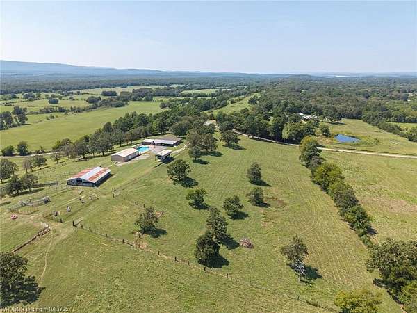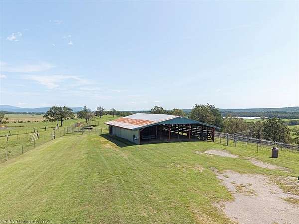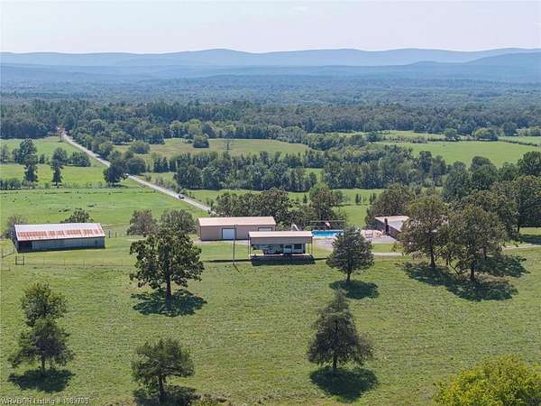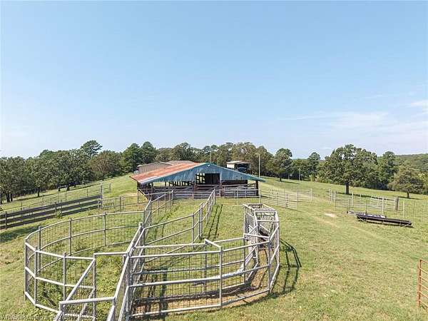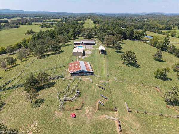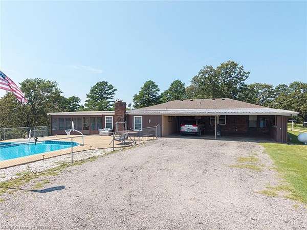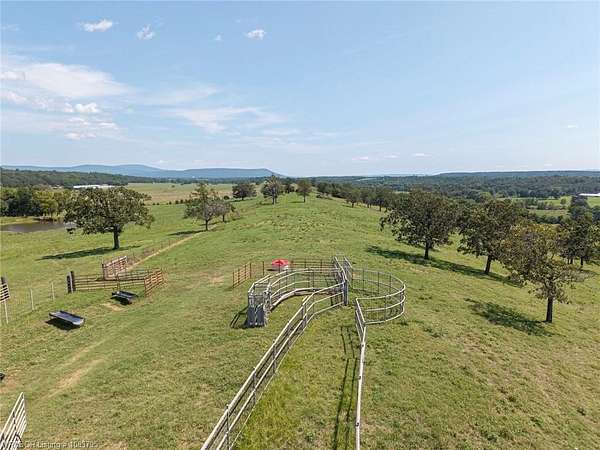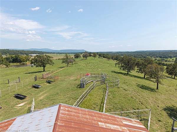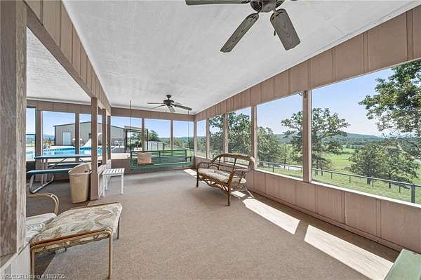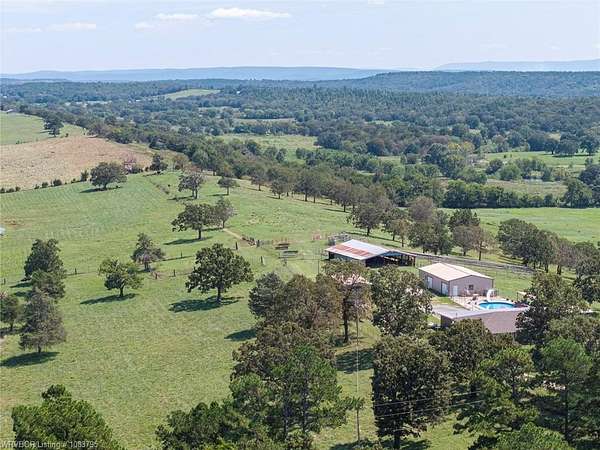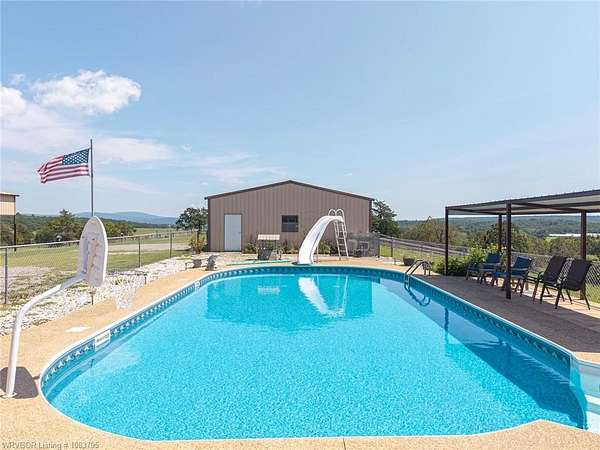 This charming four-bedroom, three-bathroom home offers stunning views of 90 acres of idyllic land. The property features several iron corrals and round pens, four ponds, RV parking, and a spacious 30x40 shop built on concrete with electricity. The shop is equipped with two 9-foot roll-up doors. The pool, originally saltwater, has been converted to chlorine, but the seller assures that it can easily be reverted back to saltwater by simply changing the filter. Additionally, the expansive screened-in porch provides a lovely view of the land, complete with an all-weather creek bordered by pipe fencing.