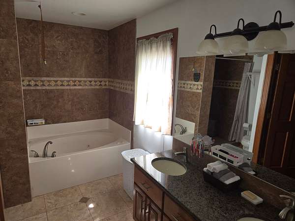 The main floor also includes a primary suite designed for comfort, with an en-suite bathroom that boasts double sinks, tub with tile surround, a tiled walk-in shower, heated tile floors, and a large walk-in closet. An additional bedroom, half bathroom, and convenient laundry area complete the main level, enhancing the home's practicality.