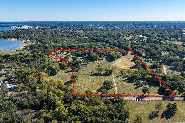 Outstanding home that has it all! Starting with the gated entry to 26 beautiful acres for raising livestock and for recreation. Open the front door into a wide beautiful entry with carved woodwork tall ceilings and curved staircase. The formal dining to the left of entry with access to kitchen. The kitchen has a commercial range, built in refrigerator, granite counter tops, large island, wonderful cabinet space, separate eating area. Open to the living room that boasts more tall ceilings, fireplace with built in shelves, and floor to ceiling windows. There are 2 studies, one on each floor that have wood accents, and built in shelves. Main bedroom is down and has large bath with double vanities, soaking tub, glass enclosed shower, separate toilet area and large walk-in closet. Sunroom has access to the porch and back yard. Upstairs study has small balcony overlooking the acreage and a view of Cedar Creek Lake. Upstairs are 3 beds, 2 full baths, media room with mini kitchen so no need to leave the movie for snacks. Outside is wide, covered front porch perfect for entertaining or quietly enjoying nature. Off the back is covered patio, deck with gazebo and stone walkways. 3-car garage has a nice upstairs apartment with appliances, bathroom and bedroom. To add to this impressive property is a 40x60 workshop with cement drive and floor, RV storage and hookups, electricity and water hookups. A metal red barn on the drive in has stalls, storage and is perfect for your livestock. Cedar Creek Lake is right behind the property and may be able to be leased from TRWD. Recent updates include new roof, interior painting, new carpet upstairs, fresh mulch around front and side flower beds. For instructions on placing offers, contact listing agent. 7 day hold for all offers from list date. BUYER'S AGENT MUST PAY A $200.00 + SALES TAX OFFER MANAGEMENT FEE AT CLOSINGReview Offer InvestorHold Days 7Review Offer Hold Days (All Buyer Types)7Tax rolls reflect house and apartment footage.
