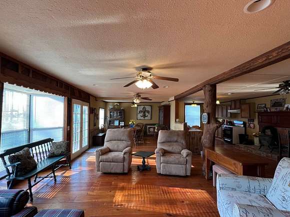 Be on Toledo Bend time! This home with approximately 1872 square feet of living area, has room enough for family to gather and hang out. The waterfront views from the main living area are great. The large kitchen with dining area gives plenty of room for preparing all those side dishes, while the fish is being fried on the main deck! The primary suite is large with an attached bathroom. There is a private covered porch off the primary suite. You do not have to watch the sun set from here, but why wouldn't you? You will have an additional three bedrooms and two bathrooms as well. Finish out the basement that has been started, to double your square footage. The home has unique touches of natural wood and metal touches, making you feel like you are in a vacation home. Coming completely furnished! The 2.19 acres +/- of property with channel waterfront has a gentle slope and is located by the launch area. Perfect to slide your aluminum boat, paddle boat in or just take a refreshing swim. There is a great circle driveway for pulling your boat around and a two-car metal carport cover. Located at the end of a Cul de sac, low traffic, surrounded by hardwood trees and relax your worry away views.