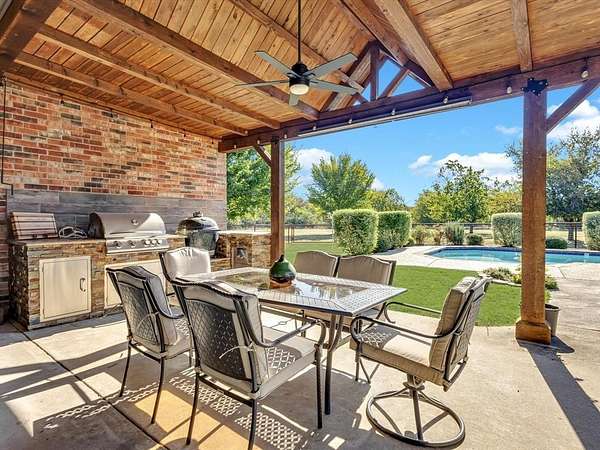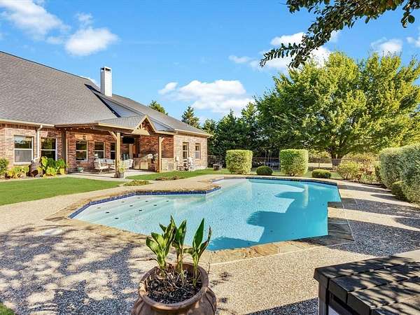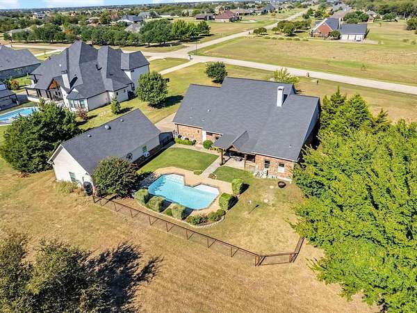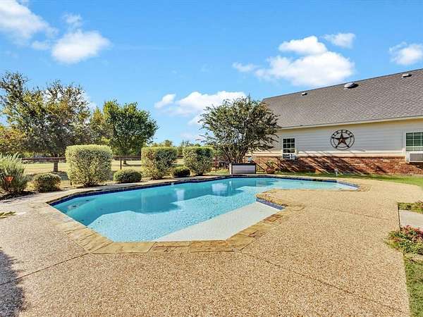 Exquisite 4 bedroom estate on 2 acres with resort style outdoor living!! Situated in a desirable Royse City location for country feel while still being close enough to enjoy the city. Perfect combination of luxury, privacy, and convenience. Elegant wood flooring, custom cabinetry, and refined finishes flow throughout the open-concept layout, creating an elevated living experience. The gourmet kitchen opens seamlessly to spacious living and dining areas, ideal for both everyday living and entertaining. A dedicated media room provides the perfect retreat for movie nights or game days. Step outside to an entertainers dream, a true backyard oasis featuring a sparkling pool, outdoor kitchen, and expansive covered patio overlooking a tranquil greenbelt where deer come visit offering exceptional privacy and picturesque views. 2 acres are beautifully maintained grounds and easy access to major highways, this property delivers a rare blend of luxury and location. There is also an added bonus of the opportunity to purchase the 2 acres next door if you desire more land. THIS IS A MUST SEE PROPERTY!