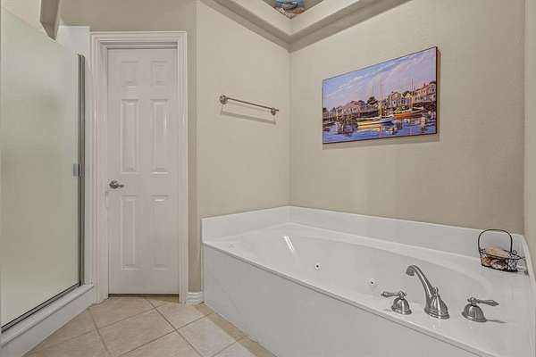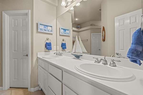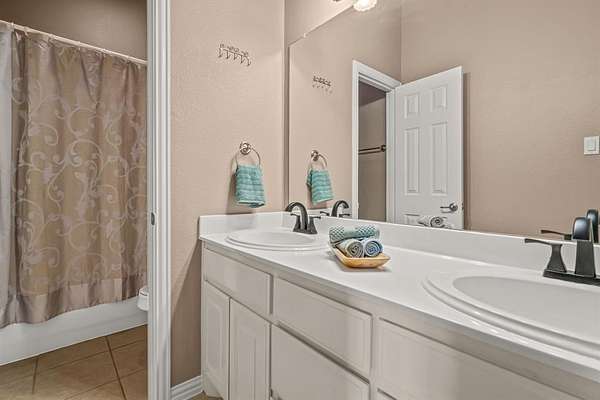 The primary suite is generously sized, with a large walk-in closet and a spa-inspired bathroom. Two secondary bedrooms share a full bathroom, while a third bedroom on the opposite side of the home has its own full bathroom, creating a flexible in-law suite perfect for family, guests, or a private retreat.