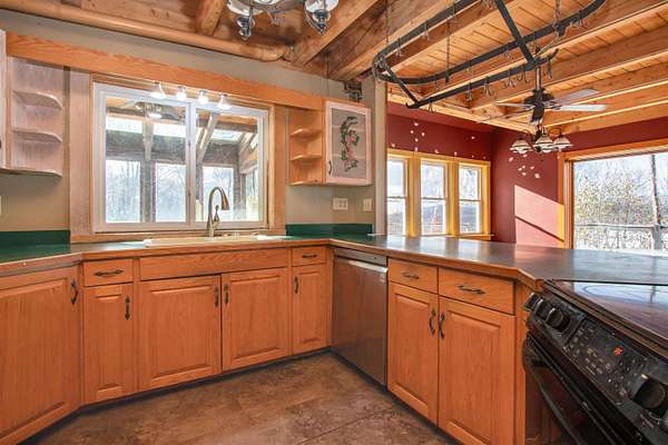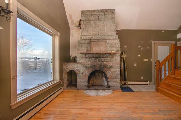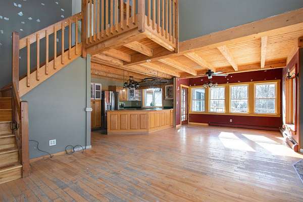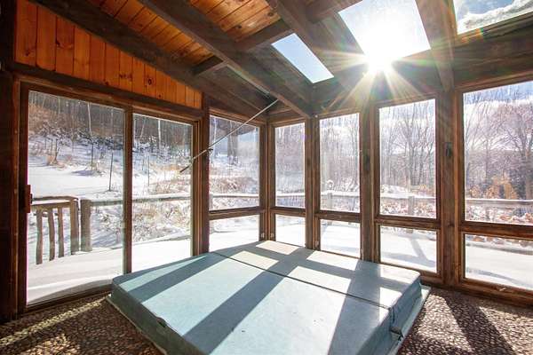 Set on 27.73+/- acres in a truly lovely spot, this location gives you that Vermont country calm with views, all while being moments from Route 2 for effortless commuting. Step inside and the first thing you'll notice is the wall of windows framing those views! The main living area feels bright and open with vaulted ceilings, a striking stone fireplace, and a smooth flow into the dining area and kitchen. Sliding doors lead to the front deck, creating a breezy indoor outdoor rhythm you'll use all year long. Just off the kitchen is a sun filled room with a sunken hot tub, a perfect place to unwind. This level also offers a bedroom and a 3/4 bath. Upstairs are two additional bedrooms plus another 3/4 bath. The walkout lower level adds even more space with an office, a 3/4 bath, a sauna, storage, and direct entry to the attached two car garage. A wonderful bonus is the in-law apartment, complete with kitchen, living room, and full bath, giving guests or extended family their own comfortable space. The land is a beauty with woods, sheds, garden areas, stone walls, perennials, and room to explore. Plus you're close to Joe's Pond, Peacham Town Forest, and other NEK favorites. A peaceful place to call home with space, comfort, and that classic Vermont vibe.