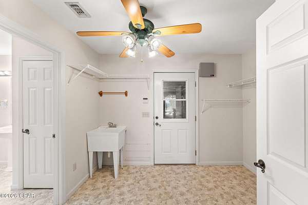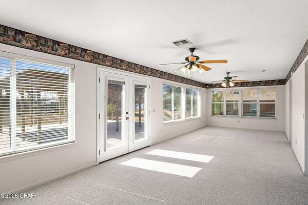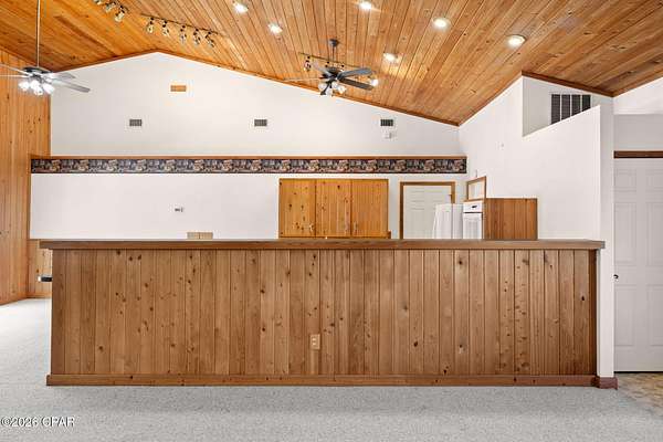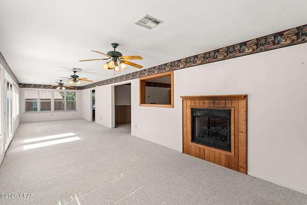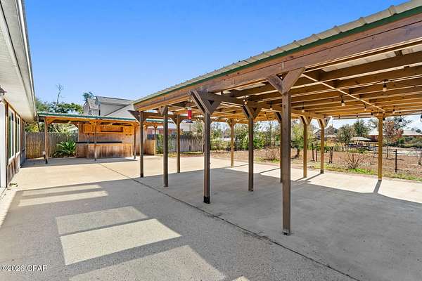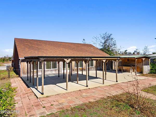 4330 De Len Drive, is an exceptional 1.6-acre waterfront property nestled along the tranquil shores of Deer Point Lake in Panama City. This rare find offers the perfect combination of expansive space, functional design, and breathtaking natural beauty, making it ideal for anyone seeking true Florida waterfront living. Inside, you'll find 3 bedrooms, 2 bathrooms, and a versatile bonus room that can easily serve as an office, playroom, or guest space. The open-concept floor plan seamlessly connects the living room and kitchen, creating a spacious and inviting atmosphere perfect for everyday living or entertaining family and friends. Large windows fill the home with natural light and showcase sweeping views of the lake from multiple vantage points. The outdoor spaces are designed to maximize enjoyment of the property's incredible setting. A fenced backyard provides privacy, while the covered patio and fully equipped outdoor kitchen create the perfect venue for lakeside cookouts, sunset dinners, or simply unwinding with the peaceful water as your backdrop. With direct lake access, boating, fishing, and paddleboarding are right at your doorstep. This property also caters to those who need abundant storage and workspace. A spacious workshop with two covered parking spaces is perfect for tools, hobbies, or equipment, and the four-car garage with rare pull-through access from both sides offers unmatched convenience for vehicles, boats, or trailers. Situated on a quiet stretch of Deer Point Lake yet just minutes from shopping, dining, and schools, this home provides both privacy and convenience. Whether you're searching for a full-time residence or a private retreat, 4330 De Len Drive delivers a lifestyle where every day feels like a getaway