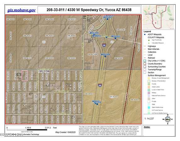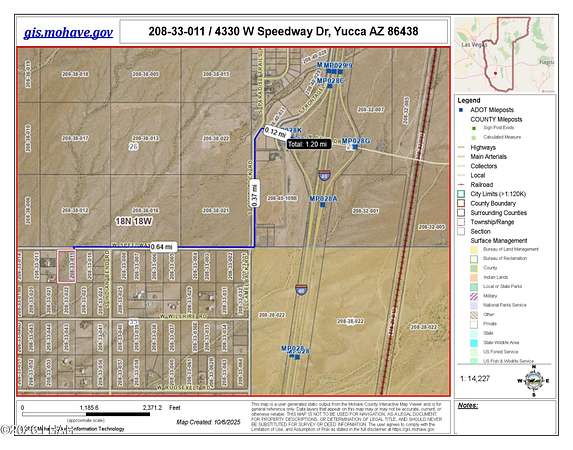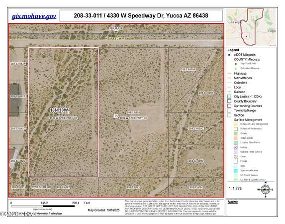 From Lake Havasu I-40, Exit-28; Old Trails Rd, L over interstate .39-miles, L at Camelback (past cattle gate), R on Speedway .50-miles, 2nd Driveway on left past Indian Bend Rd. sign at driveway