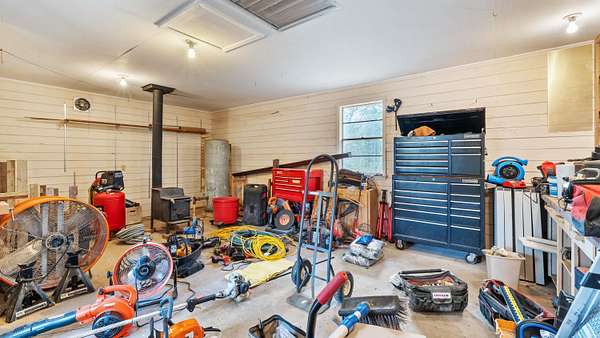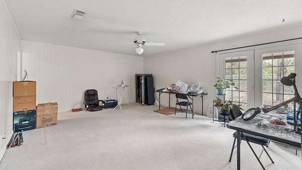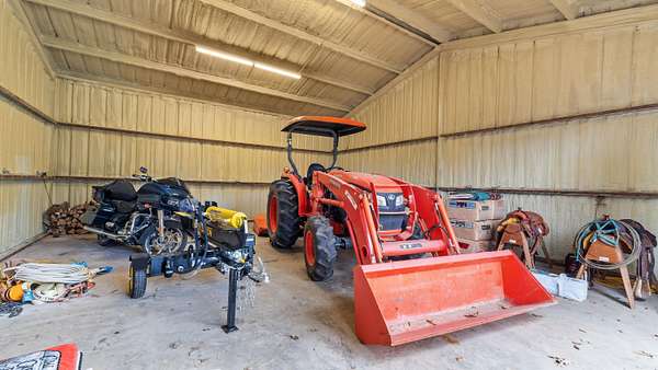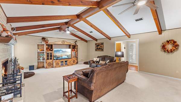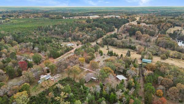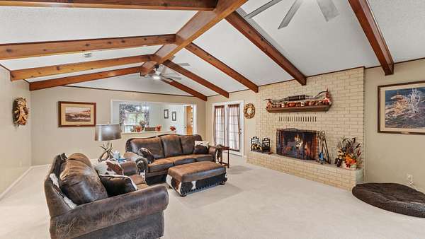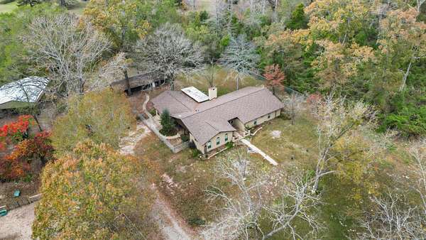Genuine country living on a beautiful 5.48 acre property! This spacious 3,175sf, all-electric brick ranch-style home is filled with character, modern updates, and unmatched functionality. The home offers 4BR/3.5BA, includes a key feature: a large flex suite with hardwood floor and wet bar, and its own exterior entrance making it ideal for an in-law suite, adult child, or rental income. The interior boasts vaulted ceilings, exposed maple beams and a wood burning fireplace. The kitchen featuring maple cabinetry, hardwood floors, a snack bar, dual pantries, and a formal dining area complete the main living spaces. The primary suite is huge with large closets and plenty of space for a sitting area with French doors. Enjoy three covered porches overlooking mature pecan, fig and pear trees. The acreage is fully set up for livestock with newly installed high quality horse-ready fencing set in concrete posts. The property includes 2 shop areas, one insulated shop with lighting plus an additional building with 4 bays for ample storage, covered parking and workshop space. New roof (4 years), deep well, 2 septic systems and double paned windows. This is a rare opportunity for a peaceful life.