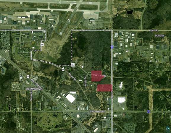 Prime development opportunity in the rapidly growing Hermantown commercial corridor! This approximately 25.85-acre site offers excellent visibility and frontage along both Haines Road and Swan Lake Road, with convenient access to Highway 53, Interstate 35, and the Duluth retail district. The property is zoned Business & Light Manufacturing, allowing a wide variety of commercial and light industrial uses, and benefits from public utilities available along Haines Road. With a combined total daily traffic count of approximately 8,894 between the two busy roads, this site offers outstanding exposure and the ability to put plenty of eyes on your future development. Located just minutes from Duluth and the international airport, this property combines accessibility, visibility, and flexible zoning in one of the region’s most active commercial expansion areas. Whether you are considering retail, office, service, or light industrial uses, this site offers exceptional potential in a thriving and expanding market.