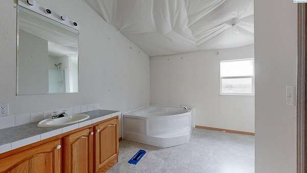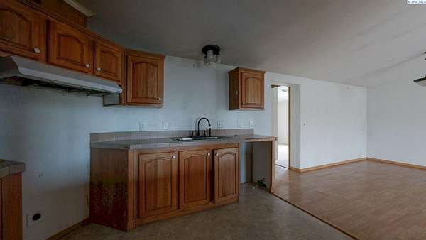 Est $1,582/moMLS# 290033 Bring your ideas and vision! This 5.11-acre property just outside Connell with manufactured home offered as-is. A 2006 MFH with 4 BR, 2 BA, plus den/office and possible 5th bedroom option. Open layout with large living room, laminate wood flooring in main areas, kitchen with breakfast bar, pantry, and ample storage. Split-bedroom design with primary suite and private bath. Walk-in closets in all bedrooms. The property sits on just over 5 acres, offering plenty of room for a shop, animals, or additional outdoor projects. Great opportunity!