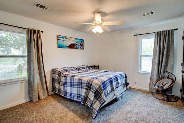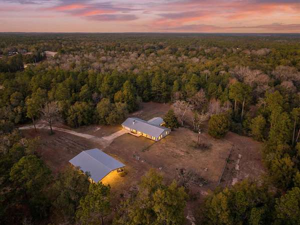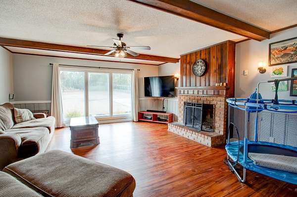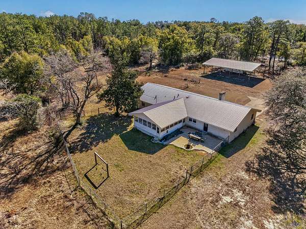 Welcome to your own slice of country comfort on 1.76 acres! This spacious 5-bedroom, 2-bath ranch-style home blends charm, functionality, and room to roam. Inside, you'll love the cozy living room with a beamed ceiling and wood-burning fireplace-perfect for relaxed evenings at home. The beautifully renovated kitchen features granite countertops, stainless steel appliances, and updated flooring, flowing seamlessly into a generous dining area with a convenient counter-height bar for casual meals or entertaining. Four bedrooms and two bathrooms are tucked together on one side of the home, while the fifth bedroom or oversized bonus room sits privately on the opposite end-ideal for a playroom, media space, guest suite, or hobby room. There's even an extra flex room perfect for a home office, gaming space, or secure storage. Step outside and enjoy the enclosed back porch, rear patio, and fenced areagreat for outdoor fun and gatherings. Need space for toys, tools, or travel gear? The impressive 40x60 pole barn has you covered with room for an RV, 100-amp service, water, lighting, and outlets. Recent updates add peace of mind, including new windows (2018), a metal roof (2020), and a new well (2024). Garden lovers will appreciate the fully irrigated garden, and yesthere's even a hurricane-proof chicken coop that comes complete with laying hens and a tractor/trailer combo for ease of completing outdoor chores! This property offers the space, upgrades, and versatility to truly enjoy the lifestyle you've been dreaming of!