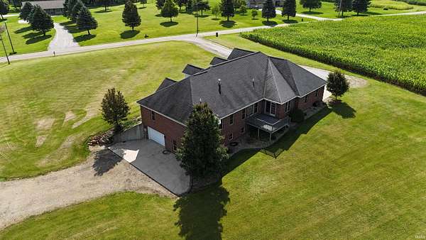 2.23 fully irrigated acres with a 3 possible 4 bedroom, 3 bathroom, 3,180 sq. ft. home all brick home in like new condition with 5 car attached garage, AND an additional 1 car attached garage. A welcoming large front porch brings you into the foyer entrance of this open concept home. The living room is just off the foyer with cathedral ceilings and plenty of natural light that connects to the fully appointed kitchen with plenty of custom kitchen cabinets, quartz countertops, and a large island w/breakfast bar. The dining room is just off the kitchen with a slider door leading out to the deck overlooking the private backyard perfect for grilling or just enjoying the country setting. The walk-in pantry, large laundry room/mudroom w/window & utility sink, and entrance to the finished 5 car attached garage are all conveniently connected to the kitchen as well. The primary bedroom suite w/double sink vanity, walk in shower, jetted tub & walk in closet, along with 2 additional generously sized bedrooms and a full bathroom complete the main level floorplan. The wide stairway off the living room brings you down to the daylight finished walkout lower level featuring a gigantic family room, possible bedroom, a craft room, the 3rd full bathroom, storage room, and the additional 1 car attached garage. This is a one owner home that looks and feels new! "NEWS" include: 2020 complete Geothermal unit, 1 hp. well pump; 2025 Culligan water softener, water pressure tank, and some interior paint. You must see this "In the Country setting" estate home to appreciate all it has to offer.