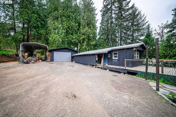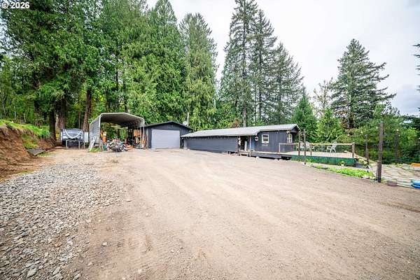 Beautiful 5 acre lot across from a fish hatchery and near a park with a boat launch. 2 bed and 1 bathroom, 700 square foot house along with a 20 x 20 shop (12 ft tall) that can accommodate toys, machines or big truck. Seller says land is buildable and approved for any size home along with an ADU with a maximum square footage of 1500. House has been updated from floor to roof in 2025 (flooring, insulation, electrical, plumbing, sheet rock, cabinets, roof and gutters). NHC permit paid for and building plans paid for the 1500 sf ADU. New driveway culverts added. Washer/Dryer, bedroom TV and chicken coop included. 20 x 40 carport included as well.