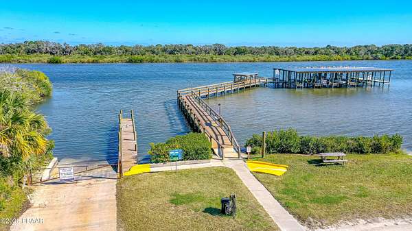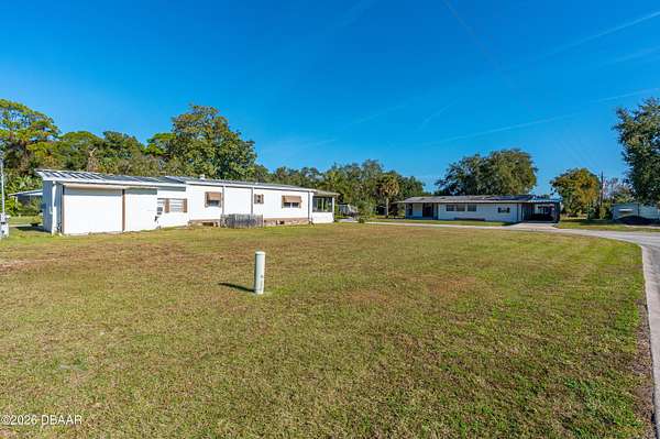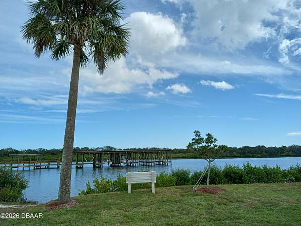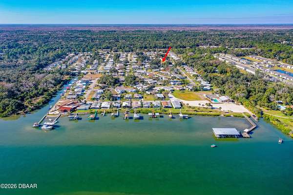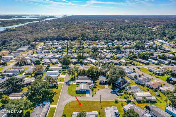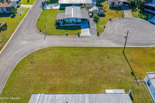Terra Mar Village is the Florida lifestyle, with a rare opportunity to build in a desirable waterfront community. One of the last vacant lots, this cleared, and level 50 x 100 corner lot sits on a quiet cul-de-sac. Zoned M5, it allows a new manufactured home, relocation of an existing manufactured home, or construction of a single-family concrete block or wood/metal-frame home. A county-approved variance for extended setbacks is in place, and site plans are available for a 2-bedroom, 2-bath home with loft, two driveways, and carport. Located in Flood Zone X, flood insurance is not required. Community is not a 55+ community and is zoned for New Smyrna Beach High School. Amenities include two pools (one heated), clubhouse, bocce ball, shuffleboard, RV and boat storage, boat slips (lease available), private boat ramp with Intracoastal access, boat dock, and new fishing pier. No lot rent, low fees, minutes to shopping, dining, and New Smyrna Beach.