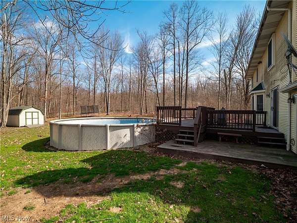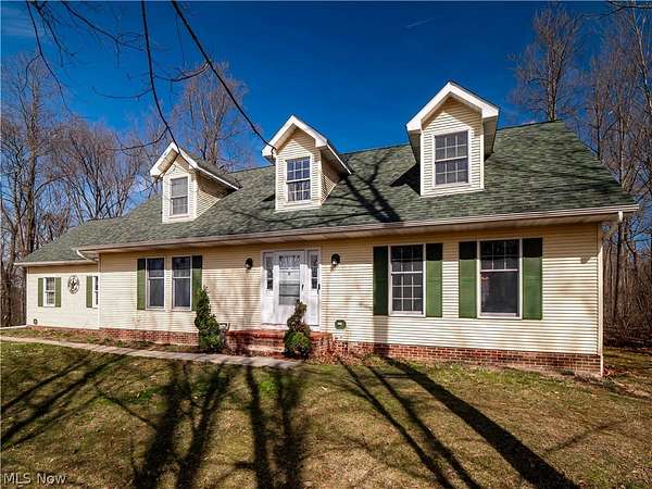 Tucked away on over 2.5 acres of tree-lined property, this charming Cape Cod offers the perfect blend of peaceful seclusion and everyday comfort. A private circle drive welcomes you home, setting the tone for this serene, park-like retreat surrounded by nature. Just off the garage entry, you'll find a convenient first-floor laundry area paired with a half bath-ideal for busy lifestyles. A dedicated office space showcases custom molding, built-in shelving, and ample storage, creating a functional yet inspiring environment for work or study. The heart of the home is the inviting family room, where a cozy stone fireplace anchors the space and flows seamlessly into the eat-in kitchen. Freshly painted cabinetry and updated hardware give the kitchen a modern touch, making it perfect for both everyday living and entertaining. From here, transition effortlessly into the formal dining room, or enjoy the additional living room located just off the front entry-ideal for hosting guests or creating a quiet sitting area. Upstairs, the spacious primary suite offers a peaceful escape, complete with a large walk-in closet and a private bath featuring a relaxing soaking tub. Three additional bedrooms, all equipped with ceiling fans, share a full bathroom with a tub/shower combination. Recent updates, including freshly painted entryways, upstairs hallway, and bathroom cabinetry, add a fresh and inviting feel throughout. Step outside to your own private oasis. A sliding glass door leads from the family room to a deck overlooking the above-ground pool-perfect for summer enjoyment. The expansive backyard provides a tranquil, park-like setting with mature trees, offering both beauty and privacy. A playset and shed are included with the home. Whether you're seeking a quiet retreat or a home with room to grow and entertain, this property delivers comfort, character, and endless opportunity to make it yours - in a truly picturesque setting.