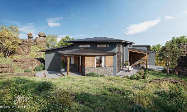 BUILD TO SUITConcept plans ~3000sqft 4 bd/2.5ba home w/ 6 car garage in Arizona's Garden of the Gods. FEATURES INCLUDE:~2500 sq ft single level living - 4 bd & 2.5 bath with an optimum split floor plan layout and great room with distinct space separation and grand 12-14 ft ceilings~500 sq ft garage floor flex room for private gym/spa, workshop, speakeasy/wine room, craft room, etc. with independent HVAC unit-6 car garage (3 tandem stalls ~1720sqft)-Front guest entrance through a private slot canyon-Option to modify design, to add 3rd full bath; -3 car garage +~500sq ft or +3 car garage to 9 and -~500 sq ft-Huge storefront style windows bring the outside in & provide winter ''passive solar''-Home completely hidden from the street