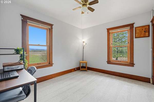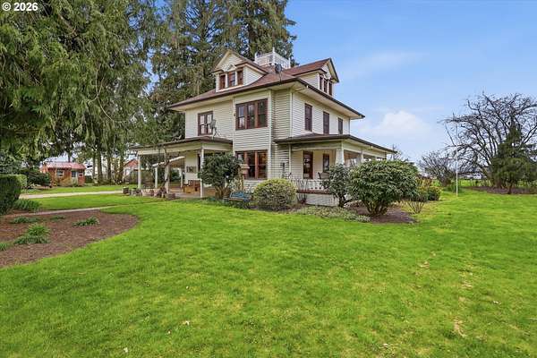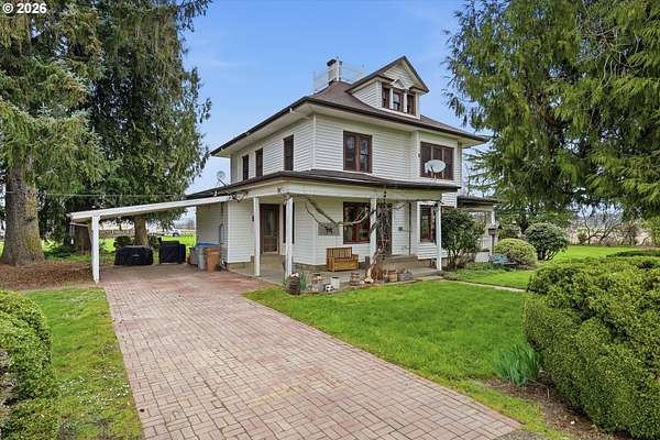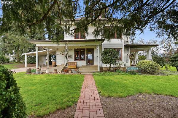 Come see this classic farmhouse that sits well off the main road down a poplar tree lined driveway. This home has had many upgrades but still has that Era Specific feel. Fir floors through the main level, exposed beam ceilings, high base wood trim, many built ins through the home, claw foot tub, original wood windows down and wrap around covered porch! There are 4 large bedrooms upstairs and a nice office on the main level with built in shelves. This is one of the rare country homes with Natural Gas to it also. New/newer things: Upstairs double hung double pane energy guard wood windows, Gas Furnace, Interior Paint, Upstairs Carpets, Electrical Outlets, Newer well pump & water filtration system and large back deck. There is an unfinished 3 level that has been just used for storage but could be finished and is not included in the square footage. Tool shed/ She shed included. This home is in total Farm Country but is 4 minutes to the store or kids schools!!The property is also in the Tualatin Hills AVA and is just a short distance from Award Winning Wineries!