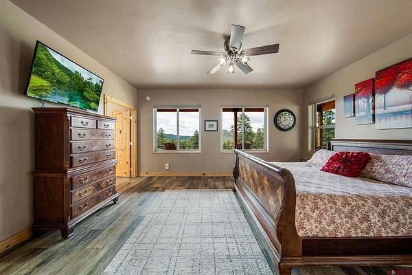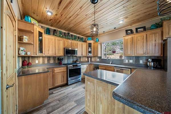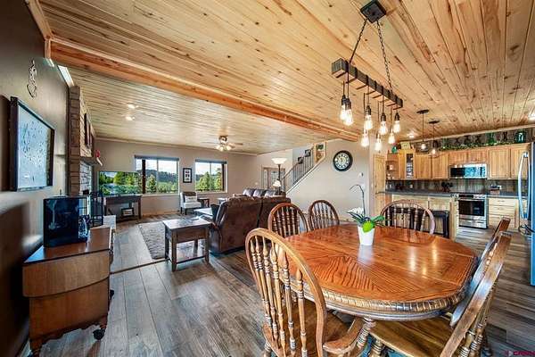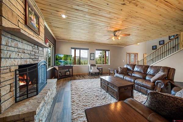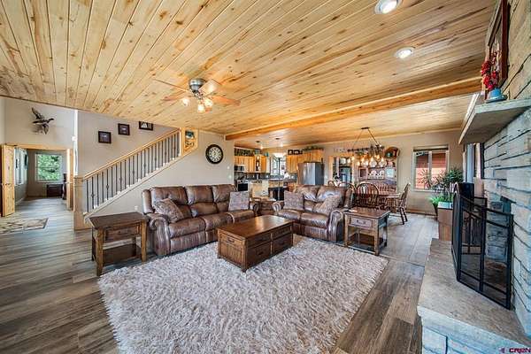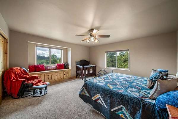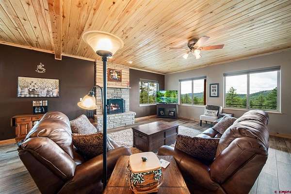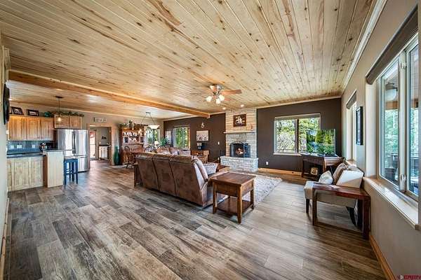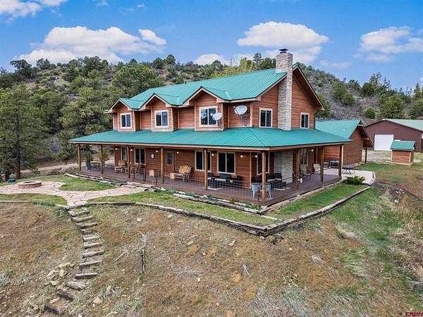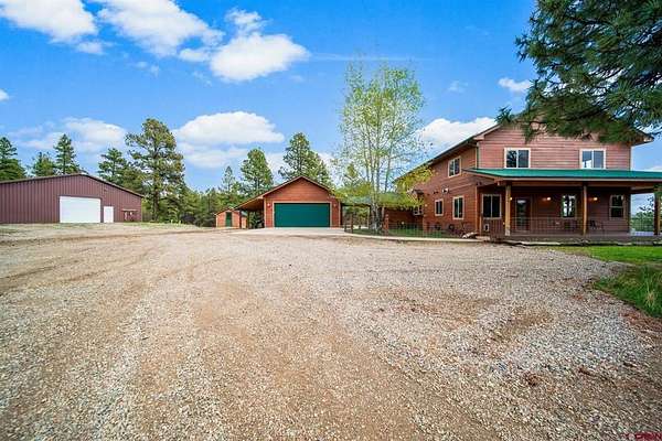 Isaac Fleener, Bayfield Realty, C: 970-759-9353, isaac@bayfieldrealty.com, www.BayfieldRealty.com: Welcome to your Colorado dream—where privacy, adventure, and breathtaking mountain views come together on 49 remarkable acres just minutes from Bayfield.As you wind up the perfectly graded, tree-lined driveway, a stunning mountain home reveals itself—perched on a forested hillside with sweeping, unobstructed views of the HD Mountains. From the moment you arrive, you’ll feel the peace, seclusion, and freedom this property offers.The main living area is filled with natural light, as expansive windows capture mountain and forest views from every angle. The open-concept design seamlessly connects the kitchen, dining, and living spaces, creating an ideal setting for entertaining or simply enjoying everyday life. The kitchen features a large island with seating, abundant cabinetry, and an impressive walk-in pantry with dual storage areas.The living room is both spacious and inviting, centered around a cozy wood-burning fireplace—perfect for those crisp Colorado evenings. The main-level primary suite is a true retreat, where you can wake up to mountain views, unwind beside the gas fireplace, and relax in the oversized jetted tub. Dual walk-in closets, a double vanity, and a dedicated dressing space or office area elevate the suite into something truly special. Off the kitchen is a functional mudroom and laundry space, leading to the breezeway for the detached 2 car garage.Upstairs, a large bonus room offers incredible flexibility as a media room, game room, or library, accompanied by three additional generously sized bedrooms and two full bathrooms, providing plenty of space for family and guests.Outside, the property truly shines. The wrap around covered porch offers a front-row seat to Colorado’s natural beauty, while a flagstone fire pit invites evenings under the stars. The land itself is a rare find—heavily treed, private, and full of wildlife, with your own trails and even your own mountain to explore. The large, heated shop with an oversized door and built-ins is ideal for hobbies, equipment, or a home-based business, and the heated concrete apron at the attached garage adds year-round convenience.Located in Colorado GMU 75, this property is a dream for hunters and outdoor enthusiasts alike, offering over-the-counter bull elk tags for 2nd and 3rd rifle seasons, along with deer tags that are typically attainable with minimal preference points.With no covenants, abundant wildlife, and easy access to Durango just 25 minutes away, this is more than a home—it’s a legacy property and a true Colorado lifestyle. Come experience it in person, because words can’t fully capture what this property has to offer.