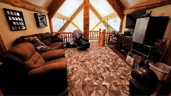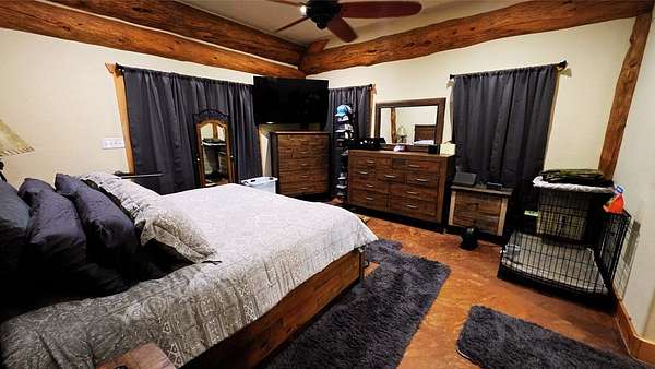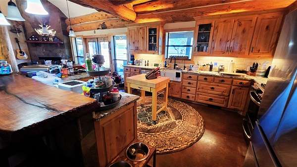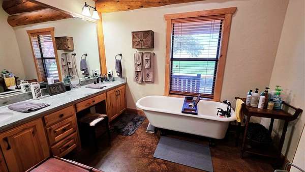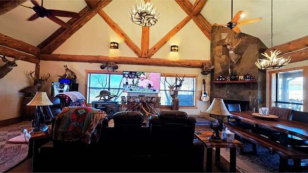 Est $10,112/mo123 Mas y menos acres Great Mix of Farm / Native Pasture for Hunting, goats, & cattle. This True Cattleman's Ranch to run yearlings on w/ 2 maybe 3 cuts a year & be able to feed all winter. Once you Enter the Amazing Sandstone Custom Wrought Iron Diamond J Gate you will drive a crushed Granite Road All the way to the Lodge. The German Style Rock Lodge is a micro version of the Yellowstone Lodge with Amazing Craftsmanship at every turn & from the kitchen overlooking the Den feels very Homey. This 2600 +/- sqft 3 Bed / 2.5 Cabin is tastefully decorated w/ Custom wood cabinetry, slate tile,