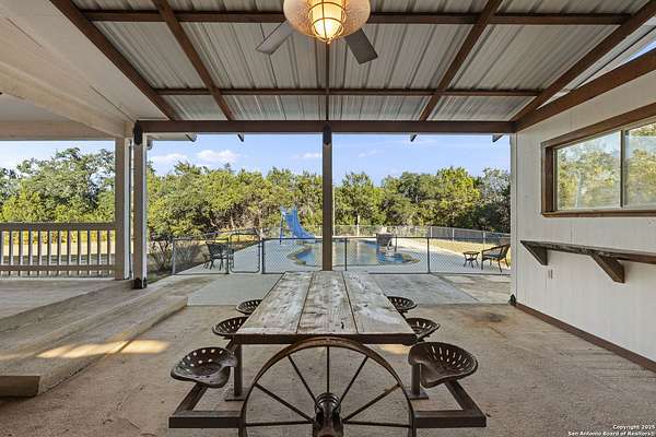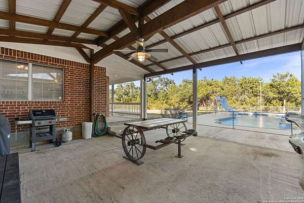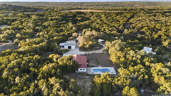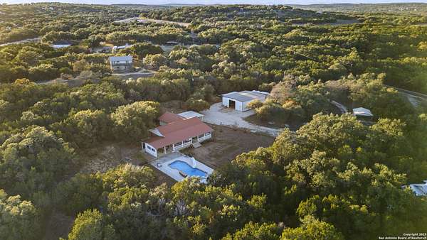 $22,900 pool resurfacing just completed - with a 5-year transferable warranty to the next owner. Full invoices are available for review. The converted garage adds 576 additional square feet, bringing the total usable space to 2,730 square feet. There are three parcels of land combined with a 2025 county assessed value of $767,193. Ask to review the survey. County Parcel IDs: 33343, 81596 & 81824. Your land. Your rules. Located north of Canyon Lake in Fischer, TX within Comal County, this property offers the rare combination of space, privacy, and unrestricted Hill Country living along the scenic Highway 32 corridor, known for some of the most beautiful views in the region. With approximately 4 private acres, no HOA, and no restrictions, you have the flexibility to live, build, store, and create on your own terms (buyer to verify county guidelines). A freshly repaved and winding stretch of Mail Route Rd leads to this secluded ranch-style property tucked back from the road, complete with two pipe-fenced entrances, including a powered gate with keypad and remotes. A long gravel driveway and circular turn-around make navigating trucks, trailers, and equipment simple. At the center of the property sits a massive 2,000 sq ft metal barn/workshop on a concrete slab-ideal for hobbyists, trades, car collectors, or anyone needing serious storage. Features include a loft, LED lighting, 110/220 power, two 50-amp RV hookups, and an electric winch, plus an additional concrete slab wing with dual roll-up doors for boats, ATVs, and equipment. A large carport, 20x25 open-ended metal building, and covered awning off the shop expand the usable workspace even further. The single-story ranch home offers 2,130 sq ft (per CAD) with a metal roof, private well, and septic system. The interior maintains a comfortable traditional layout with practical updates including new carpet in the bedrooms, granite kitchen countertops, tile flooring throughout, and a walk-in pantry. The kitchen includes a gas cooktop, built-in oven, and microwave. The primary suite offers a tub/shower combination, walk-in closet, and functional storage. The former garage has been converted into additional flex, office, or storage space, while a two-car covered carport remains in front. Outside, the property continues to deliver the Hill Country lifestyle with the newly resurfaced in-ground pool, fenced entertainment area, and covered patio ideal for grilling and relaxing. The land also features a high-fenced garden area, fire-pit gathering space among the trees, rope swing potential, and a small private firearm practice area. With mature trees and open spaces, the property provides flexibility for future projects, additional structures, or recreational use. Located just minutes from Canyon Lake High School, Canyon Lake recreation areas, and convenient access to Wimberley, Blanco, and the surrounding Texas Hill Country, this property works well for full-time living, weekend retreats, homesteading, or multi-use rural lifestyles. If you're searching for unrestricted acreage in Comal County with a shop, pool, and privacy north of Canyon Lake, this property deserves a look. Schedule your private tour today. Ask to review the survey, the list of improvements, and watch the full property highlight video.